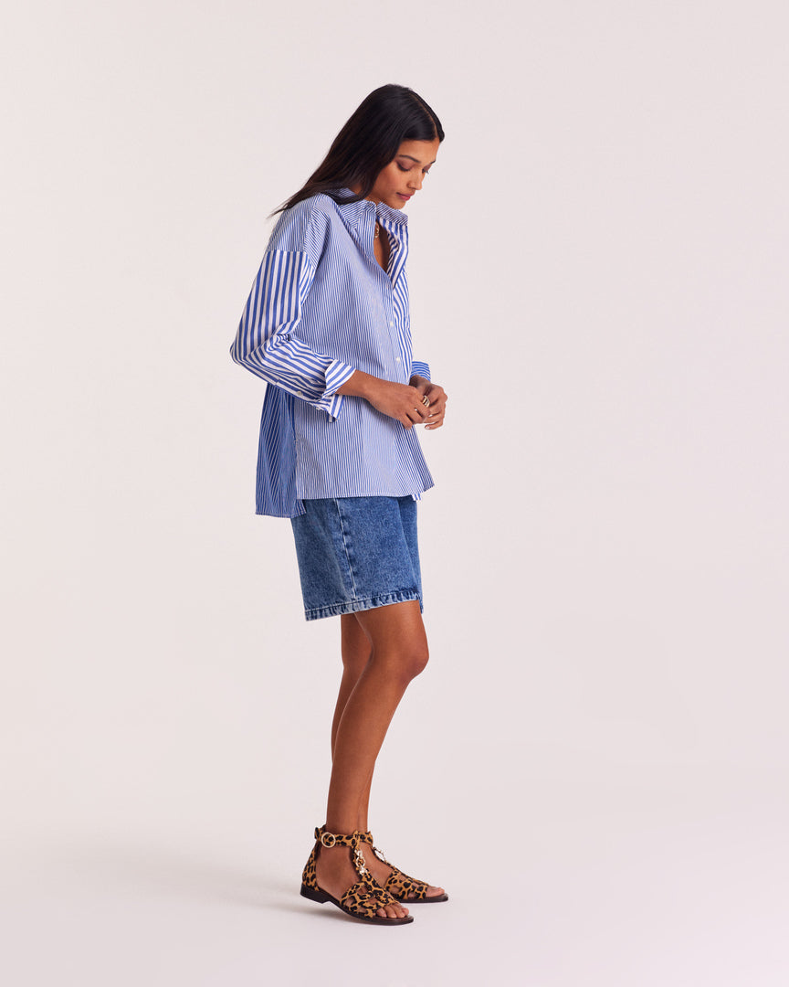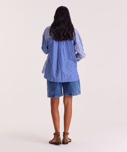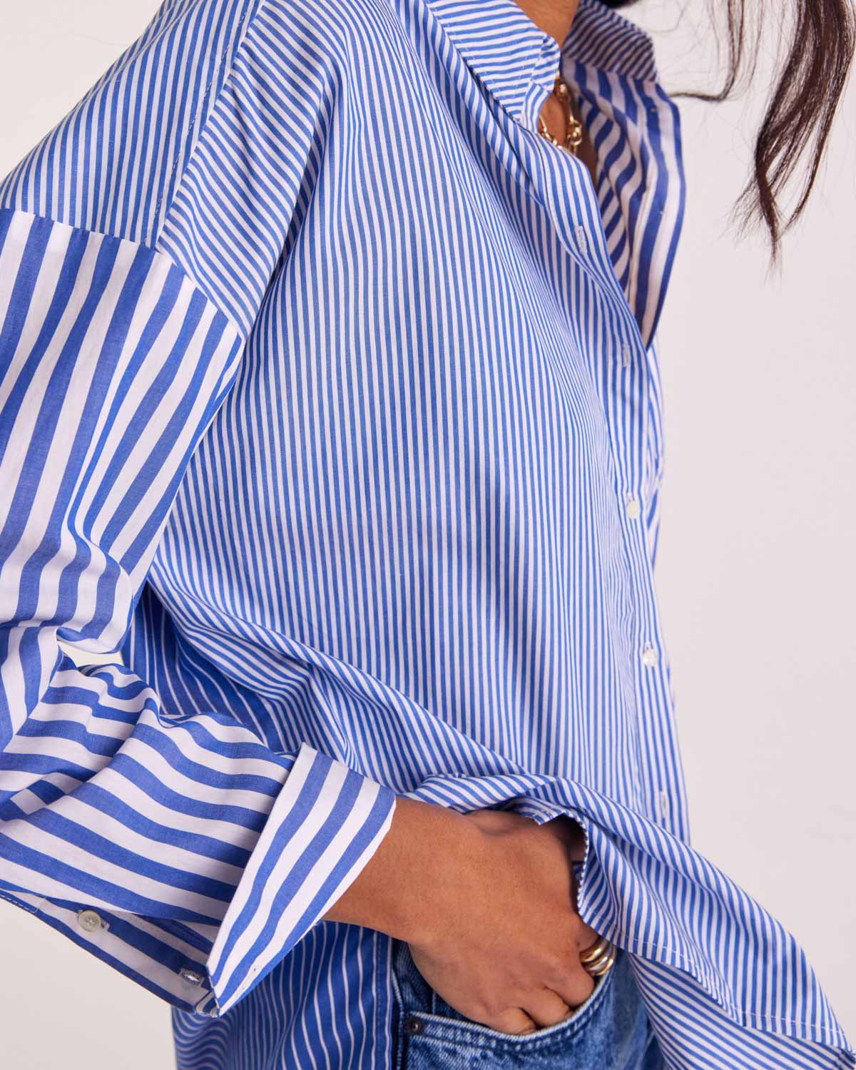 - Chemise avec un patchwork de rayures bleu