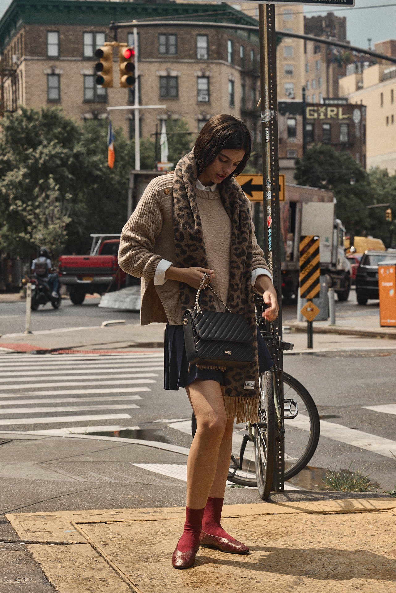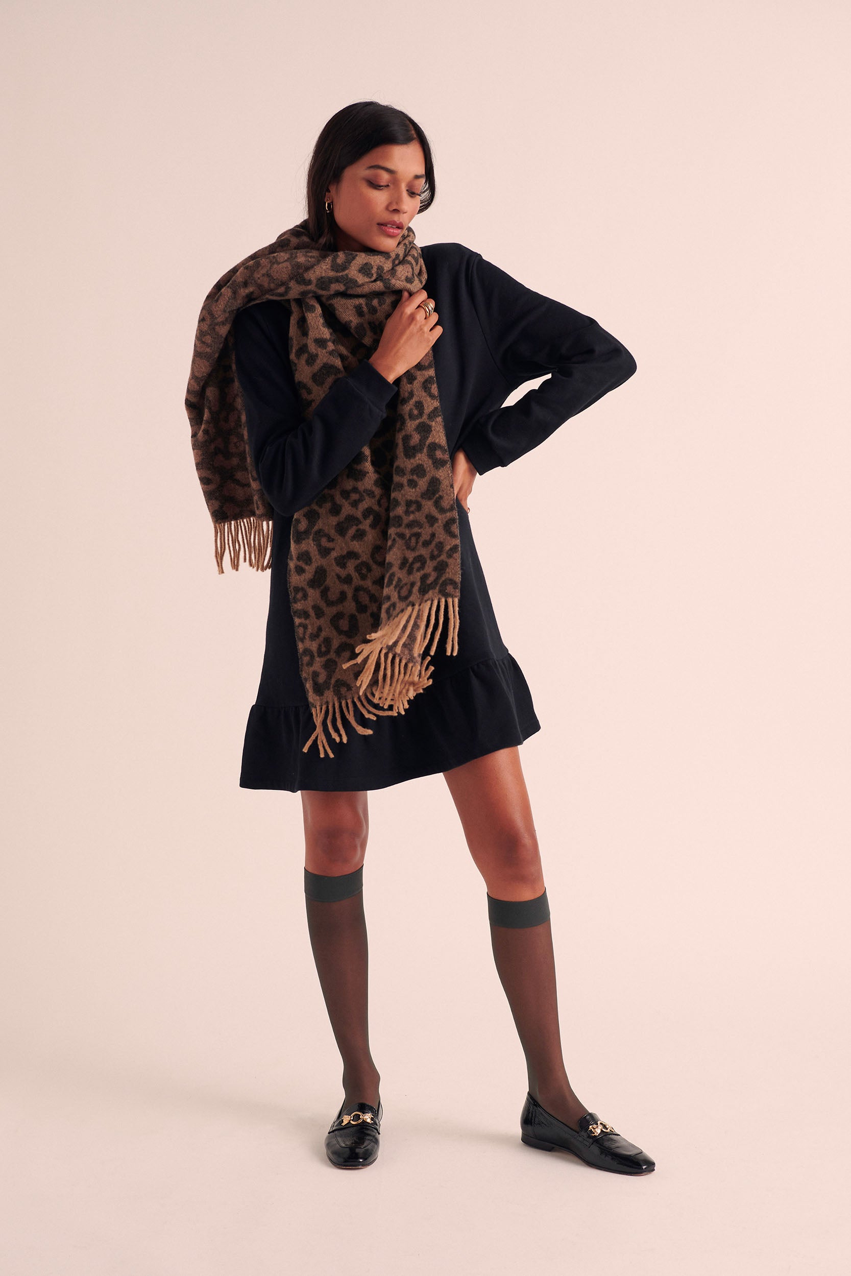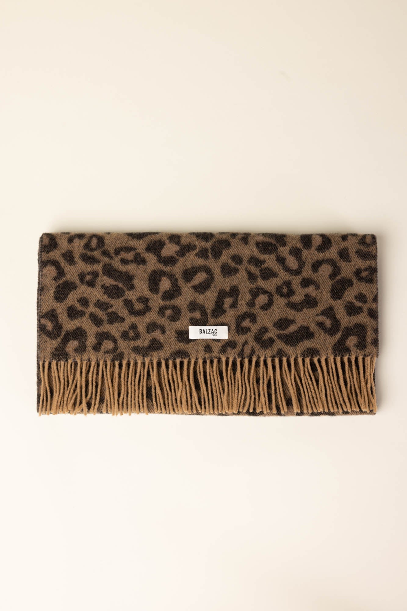 Sur les épaules ou nouée autour du cou, l’écharpe Public léopard vous suivra partout.