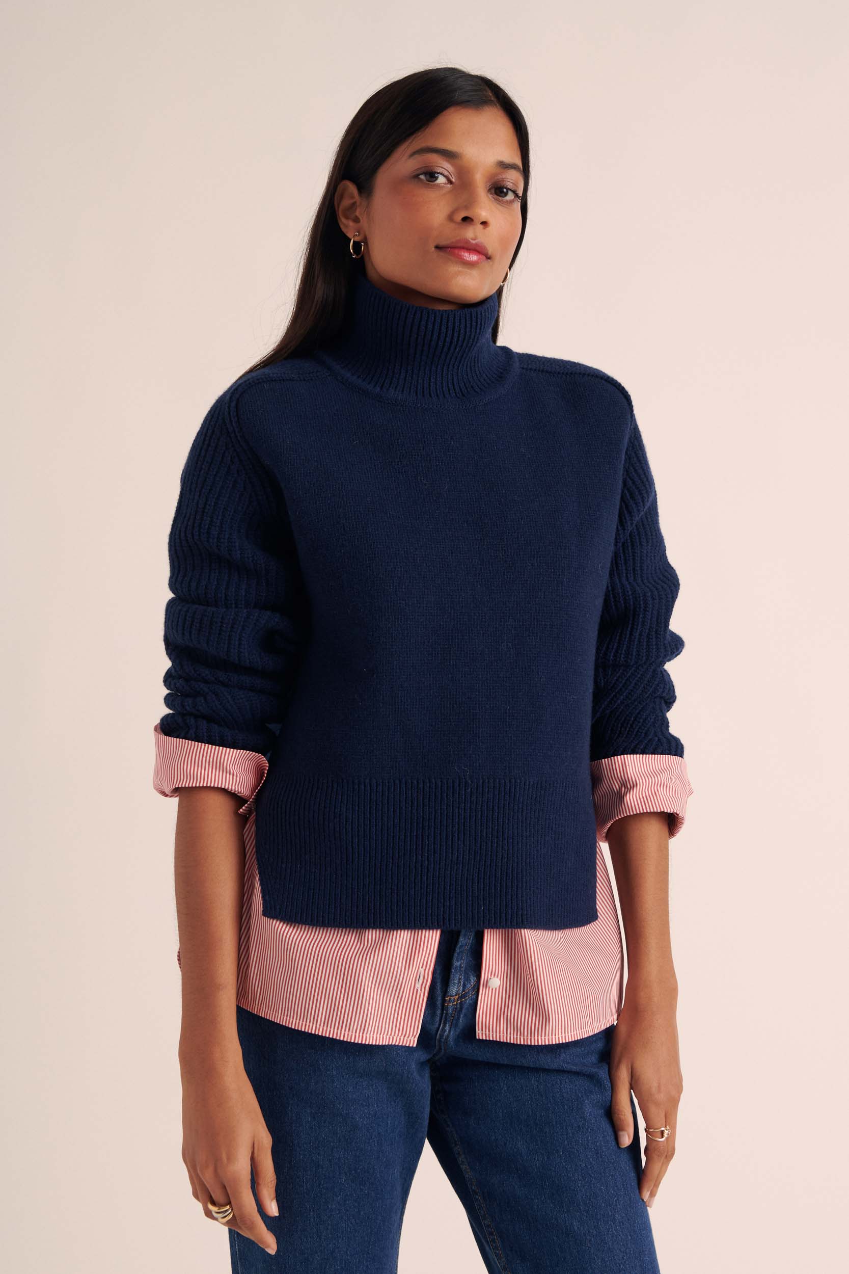 Le pull Maël bleu marine vous suivra toute la saison hivernale.