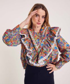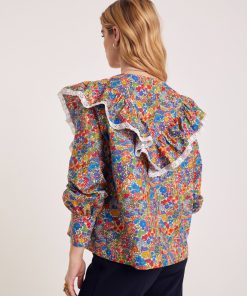 Balzac Paris Femme Prêt-à-porter Blouse Azélie | Tissu Liberty Bleu Et Jaune