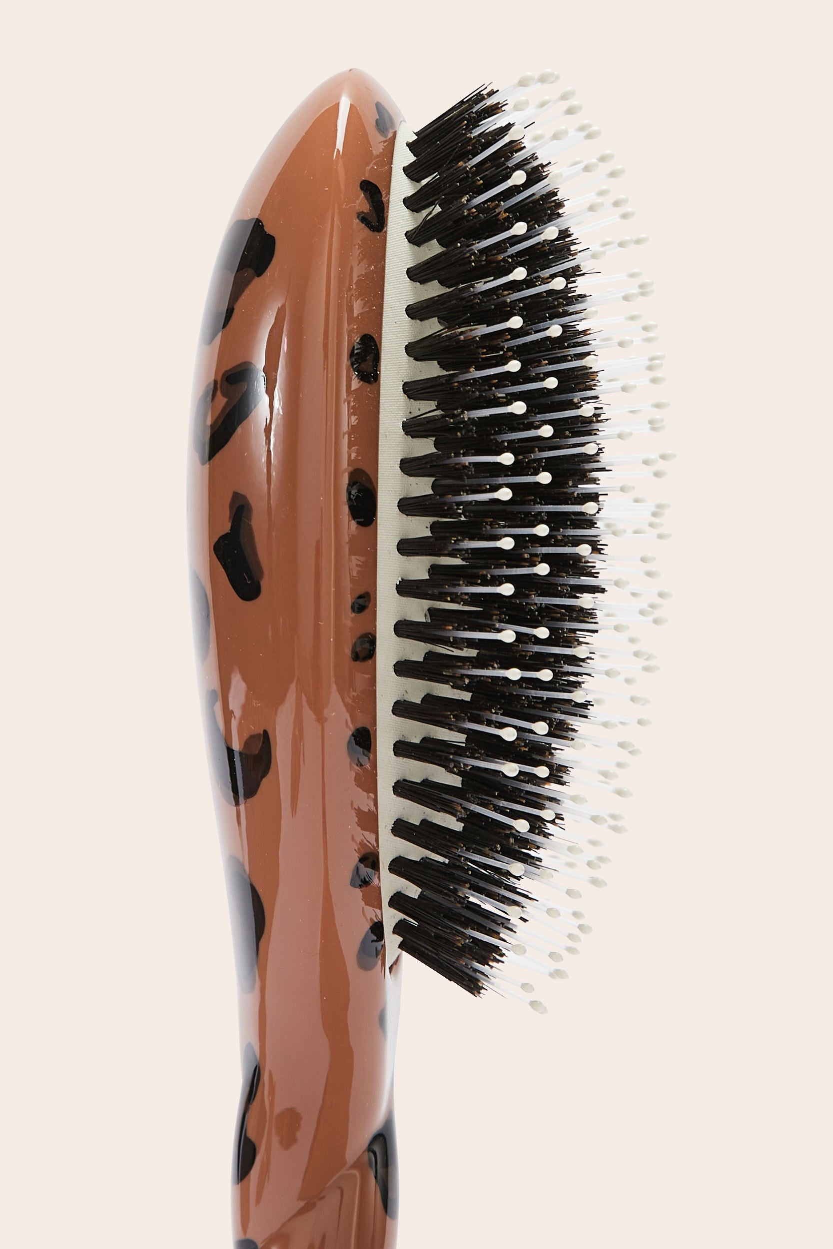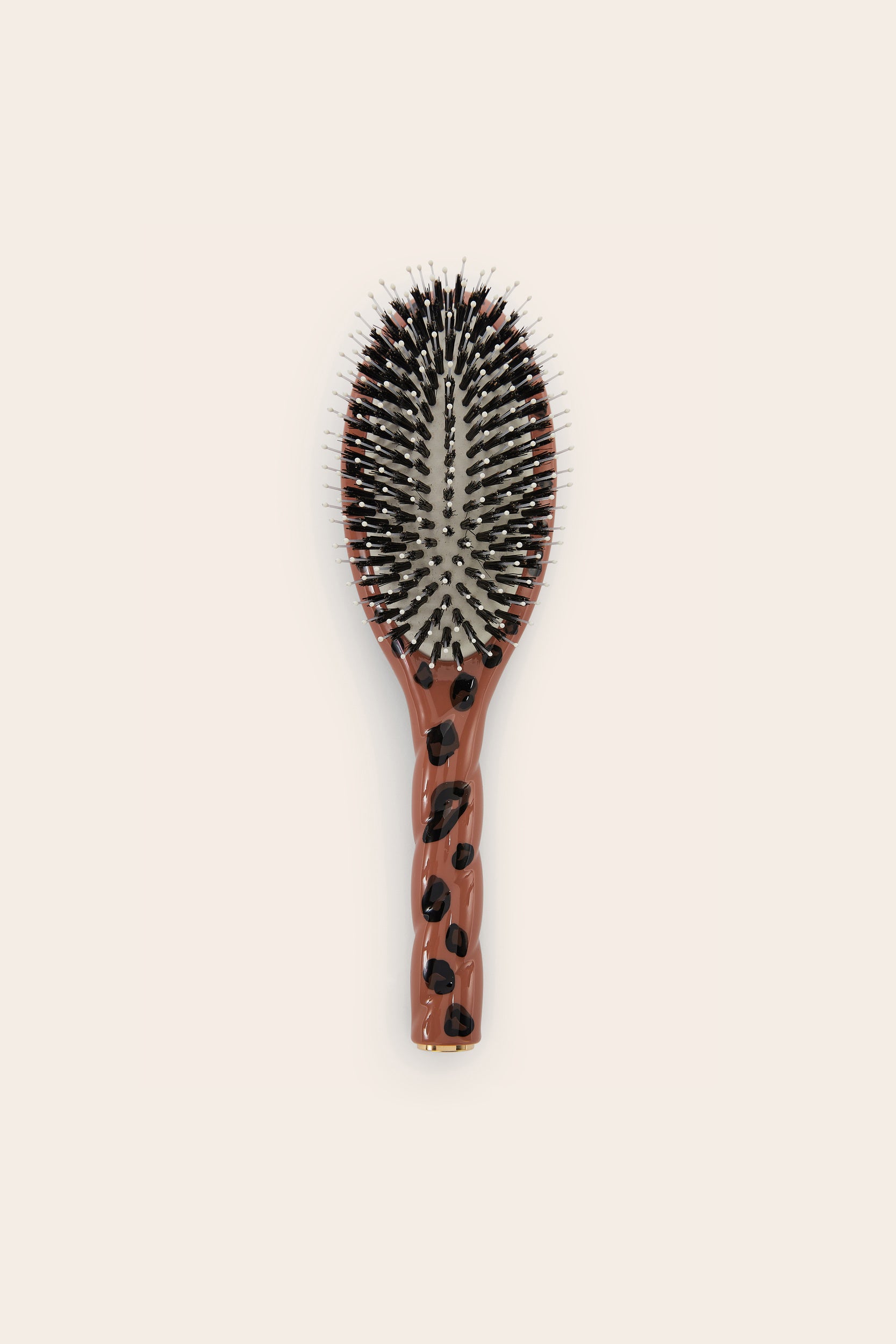- La force de cette brosse à cheveux réside dans la combinaison de ses poils de sanglier et de ses fibres en nylon. Les poils de sanglier hydratent la chevelure en profondeur. Associés à des fibres de nylon, ils assurent un démêlage efficace tout en stimulant le cuir chevelu.