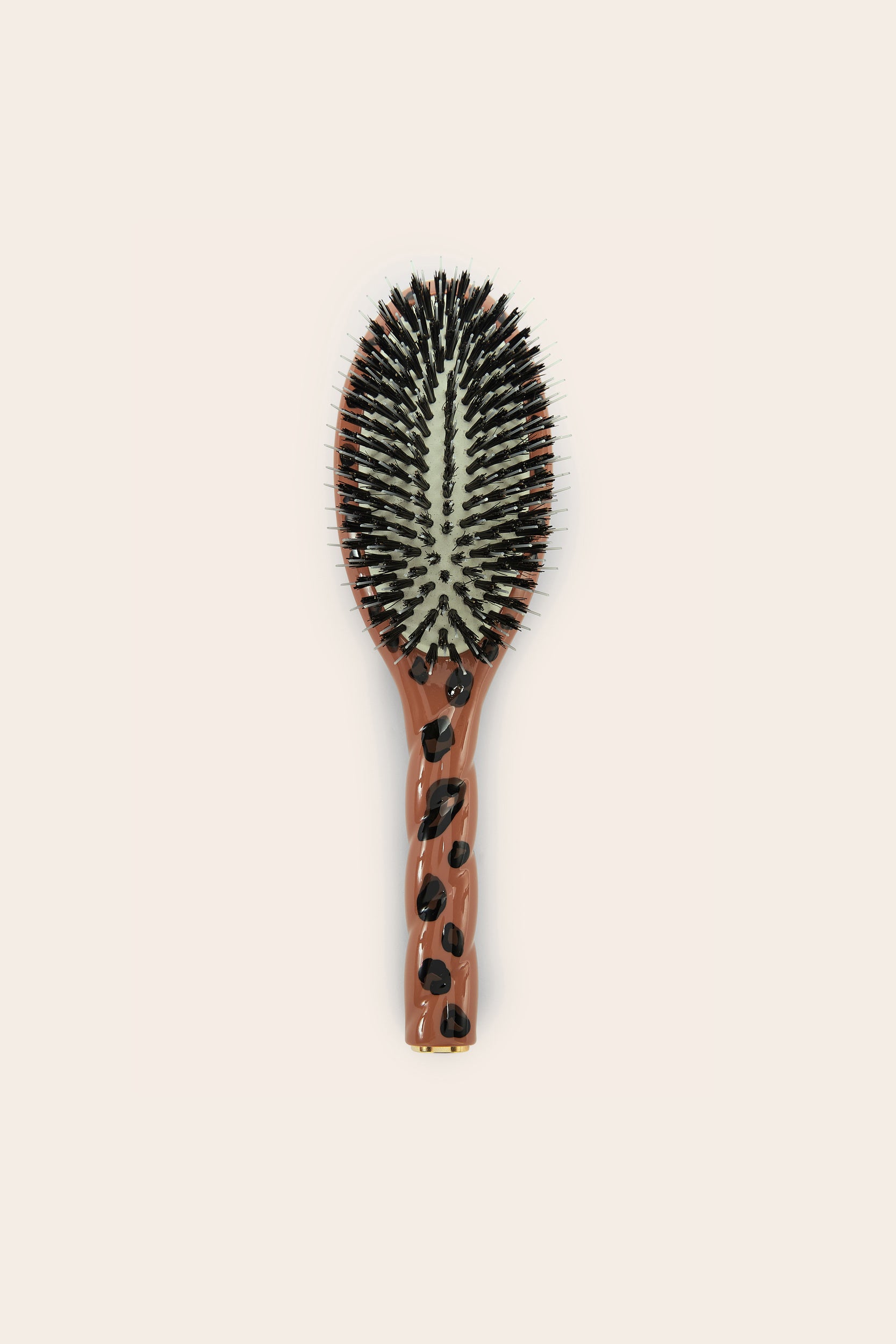 - La brosse à cheveux Indispensable Douceurassocie les poils de sanglier aux fibres de nylon, spécialement conçues pour un démêlage efficace et une stimulation douce du cuir chevelu.
