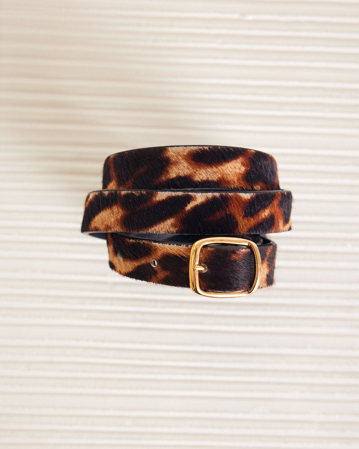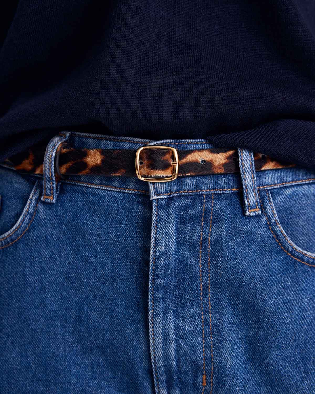 À la fois minimaliste et chic, la ceinture Amour tire son charme du cuir pony léopard caramel. Une ceinture à la une touche originale et sophistiquée pour compléter vos tenues.