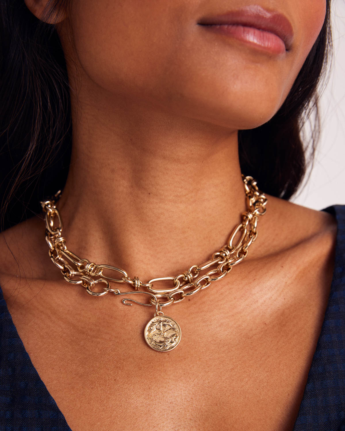 - Fermoir non réglable, sur le devant avec le médaillon