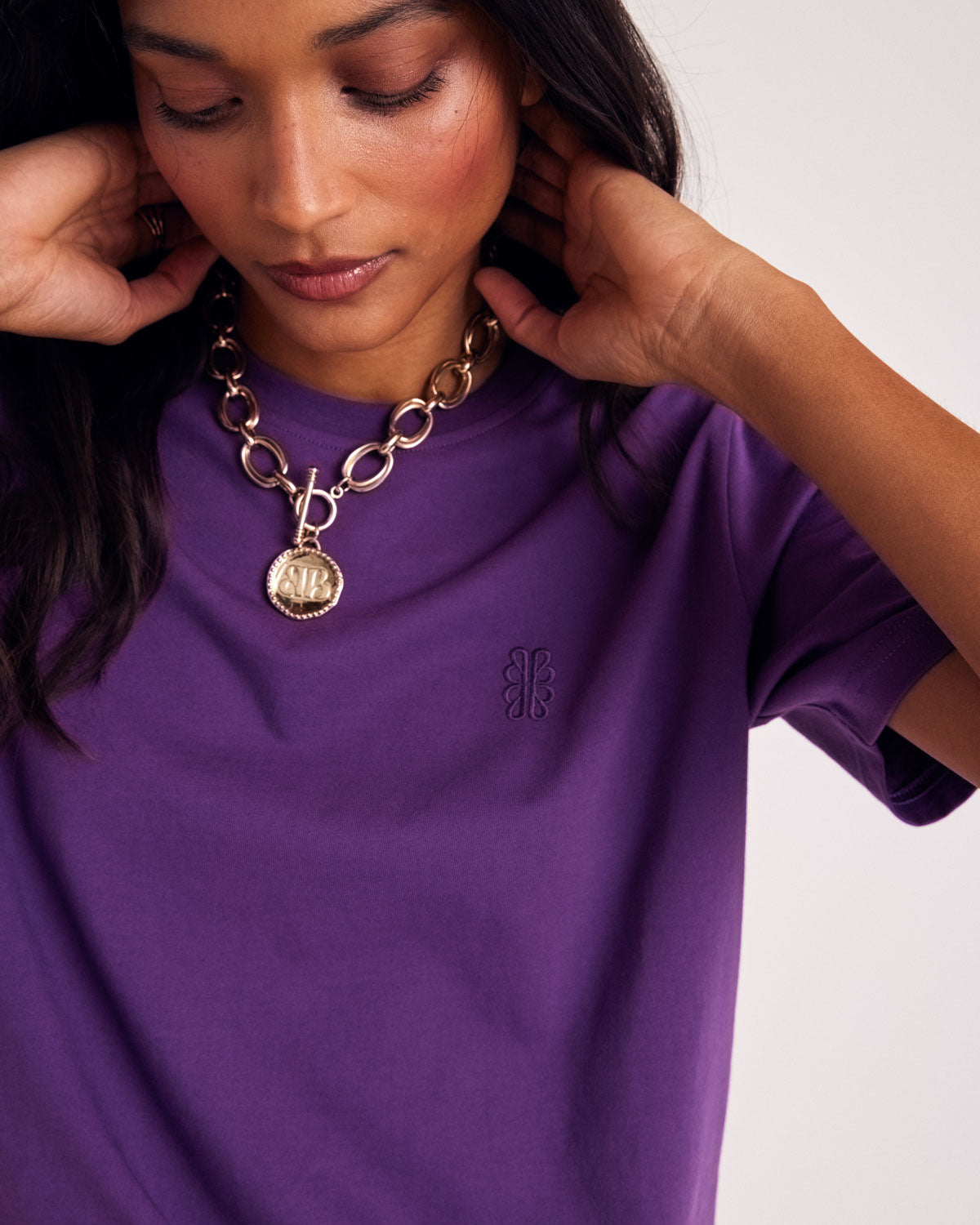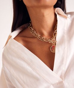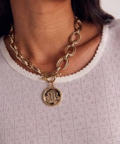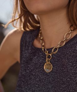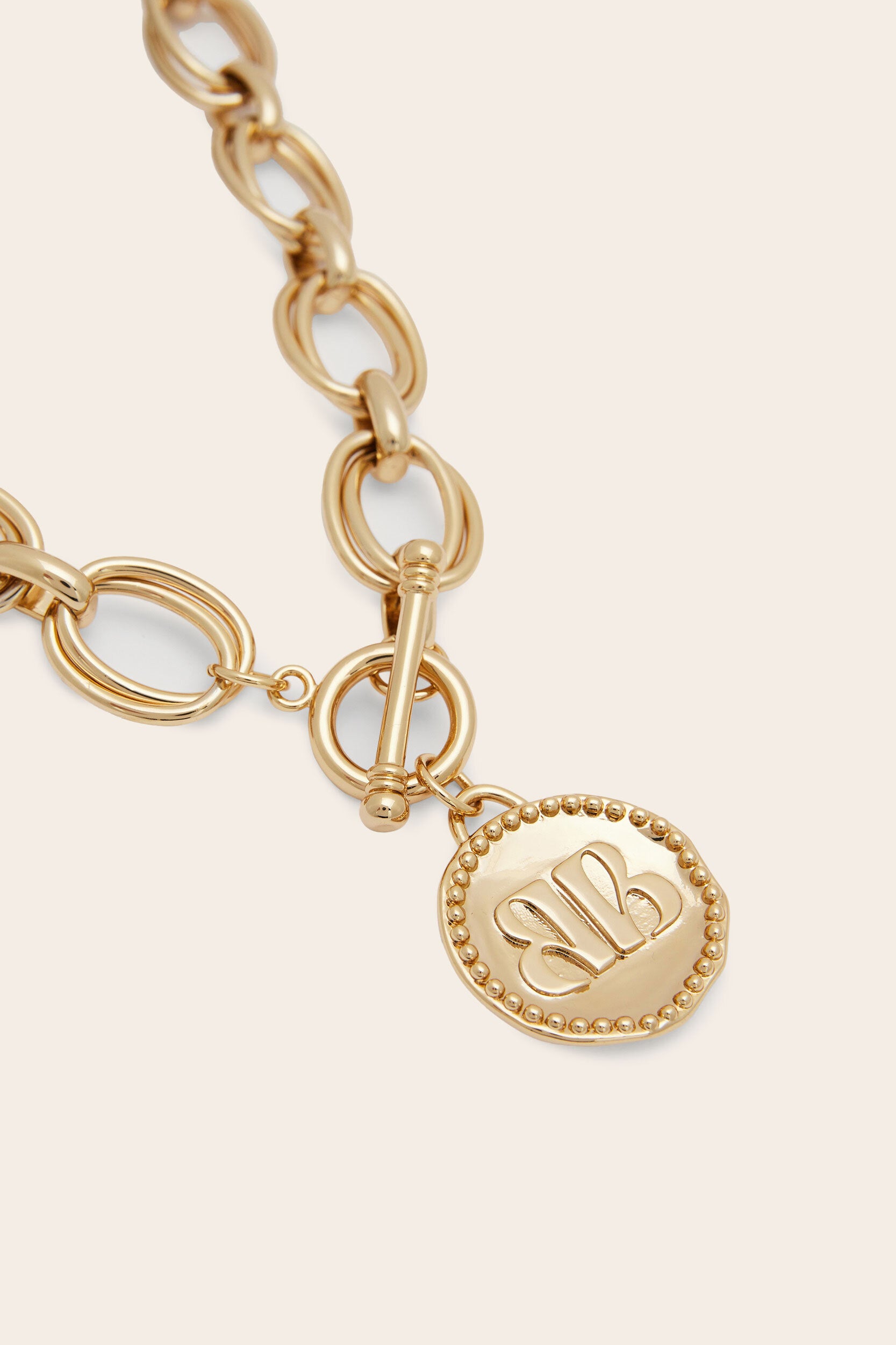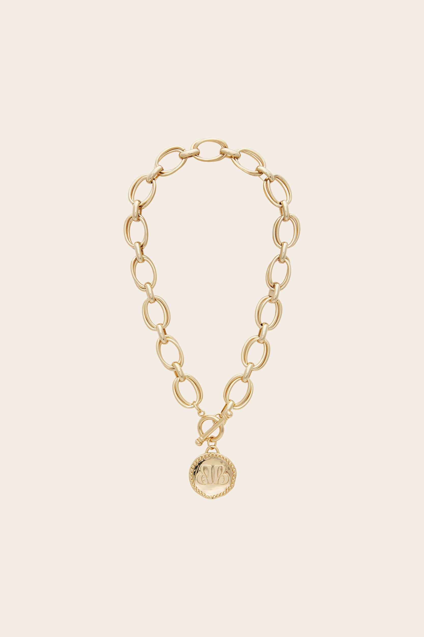 Le collier Peter doré se compose de maillons imposants et d’une médaille subtilement gravée du monogramme de Balzac Paris, reflétant ainsi un esprit à la fois classique et contemporain.