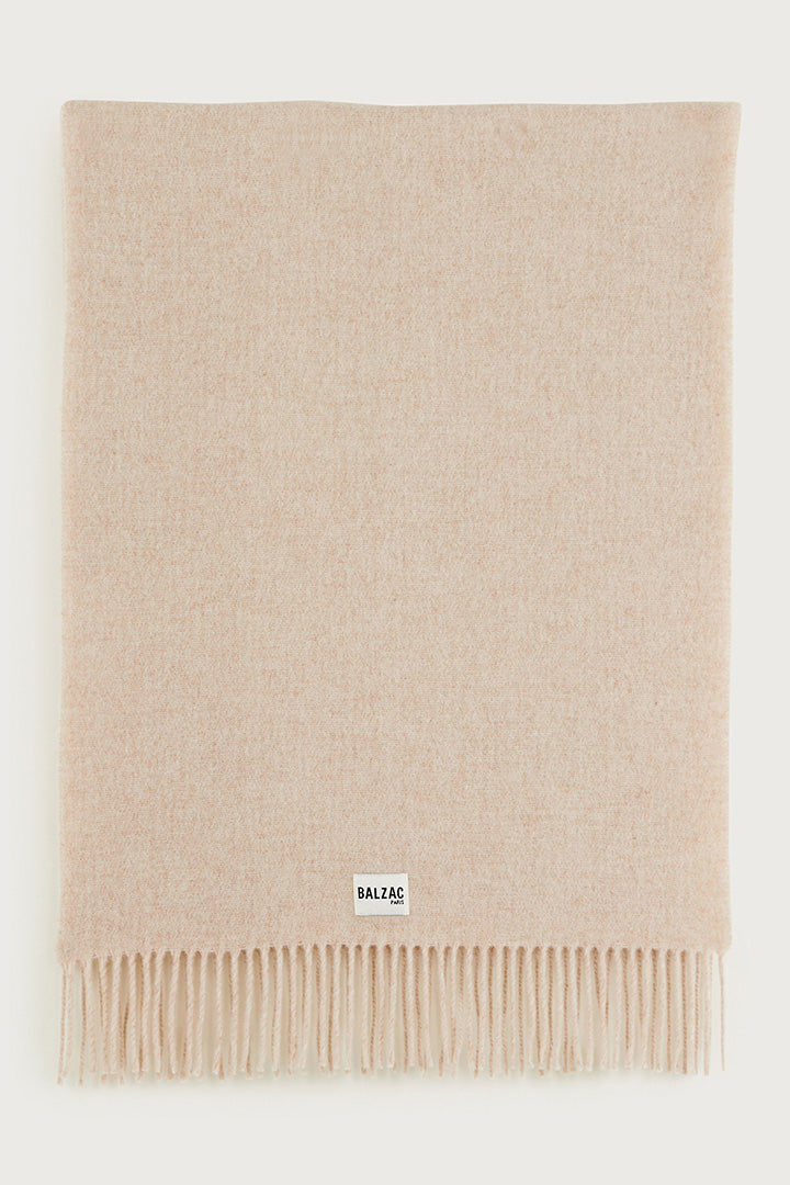 Sur les épaules ou nouée autour du cou, l’écharpe Public beige vous suivra partout.