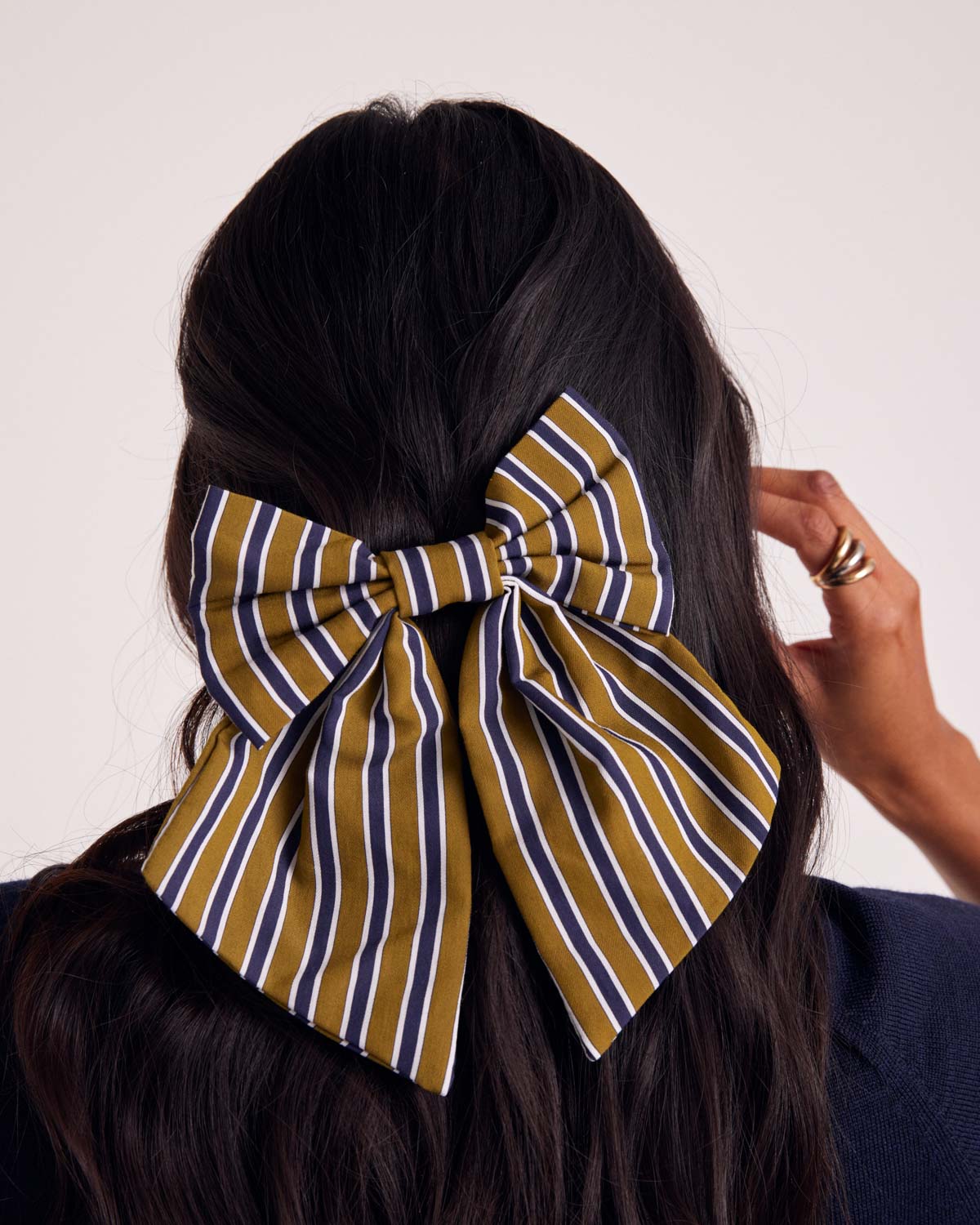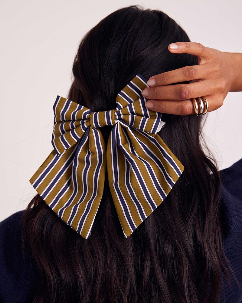 Complétez vos tenues avec une touche d’élégance et d’audace, le nœud aux rayures marine et kaki complètera vos looks en un clin d’oeil !