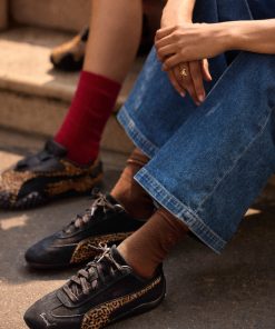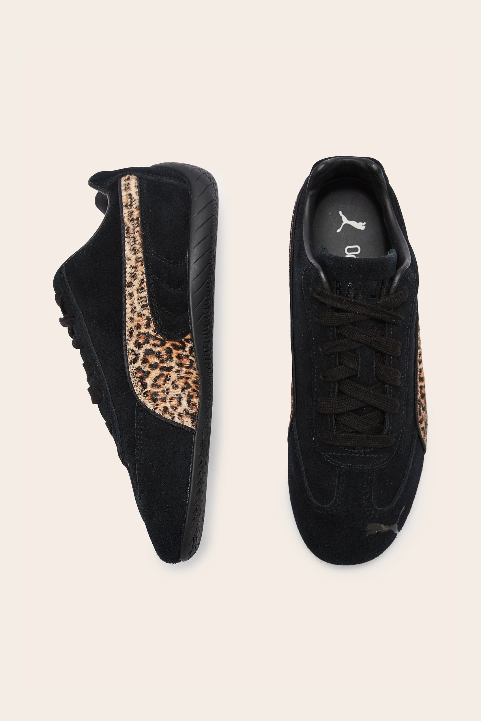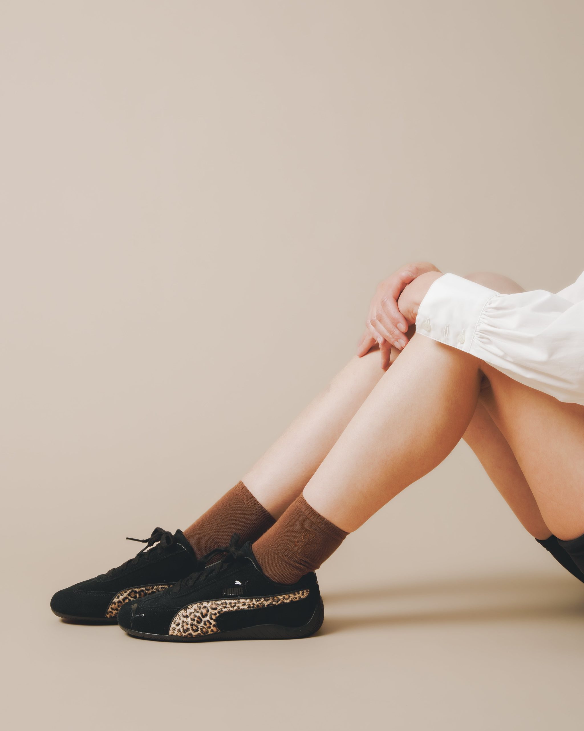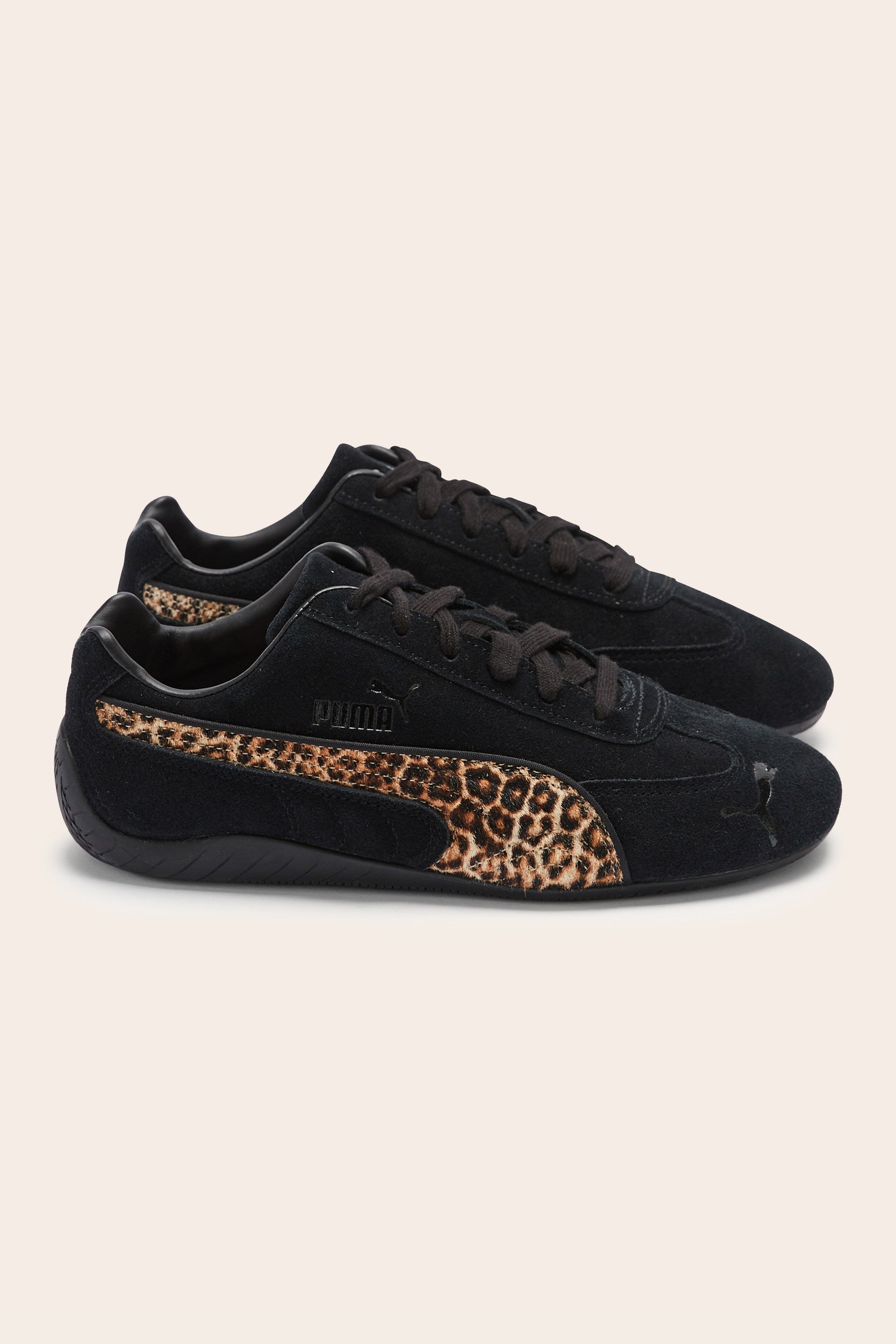 Issue des paddocks de F1, avec ses lignes épurées et racées, la Speedcat se pare de l’iconique motif léopard à l’occasion de la collab’ exclusive Puma x Courir x Balzac Paris ! Silhouette à l’audace affirmée garantie !