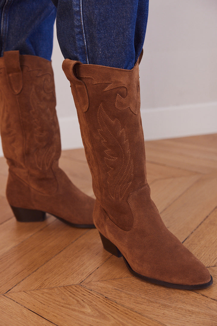 A peine enfilées, les bottes Eldorado cognac donneront du piquant à vos tenues. On aime tout particulièrement leur forme, leur talon travaillé, et les détails d’empiècements qui leur donnent une allure très moderne à laquelle on ne peut résister !