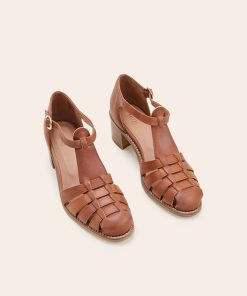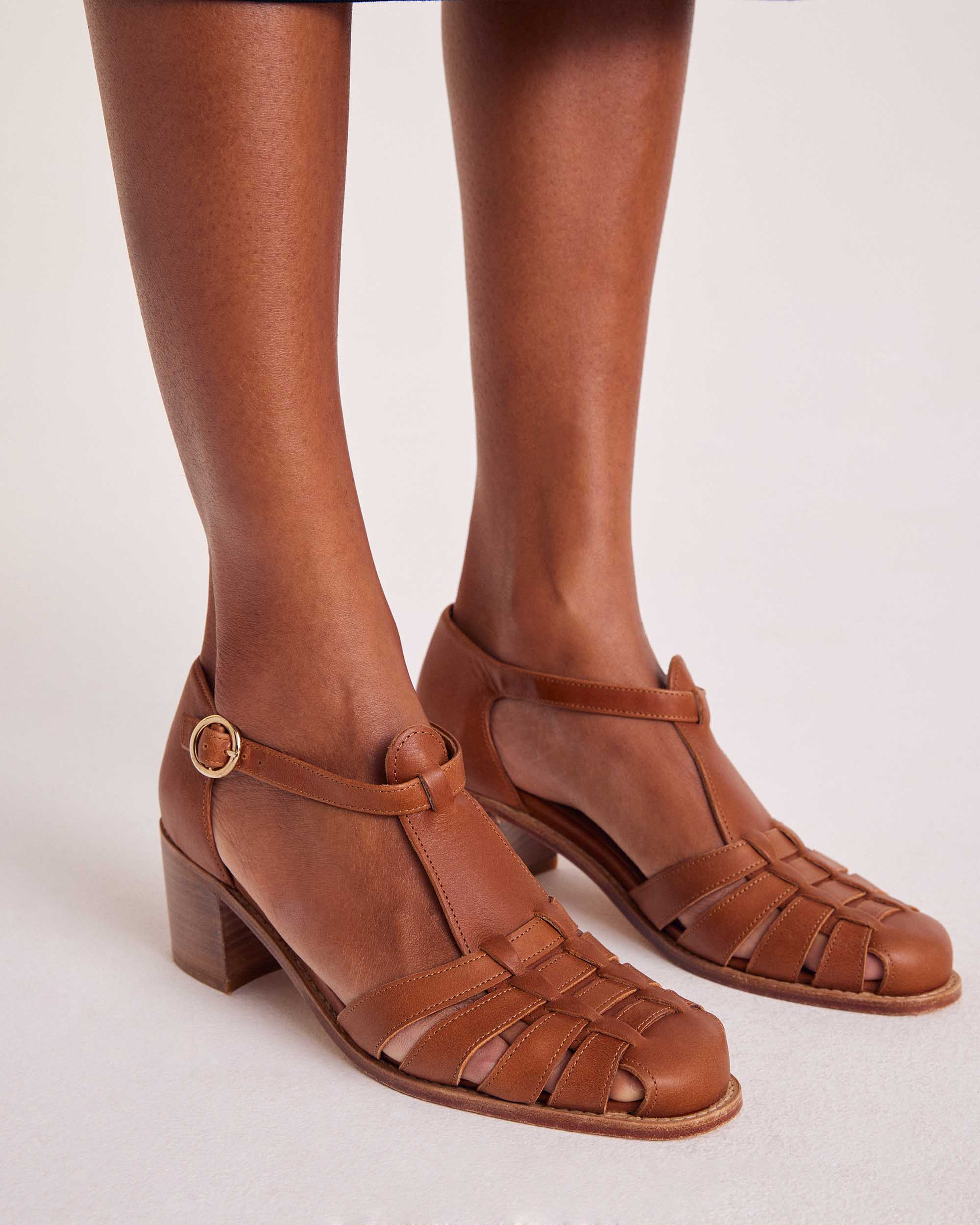 On adore les Albane camel et plus particulièrement leurs finitions proches des derbies et mocassins revisités avec un effet tressé qui nous rappelle les chaussures méduses que nous mettions à nos pieds pendant les vacances étant enfants.