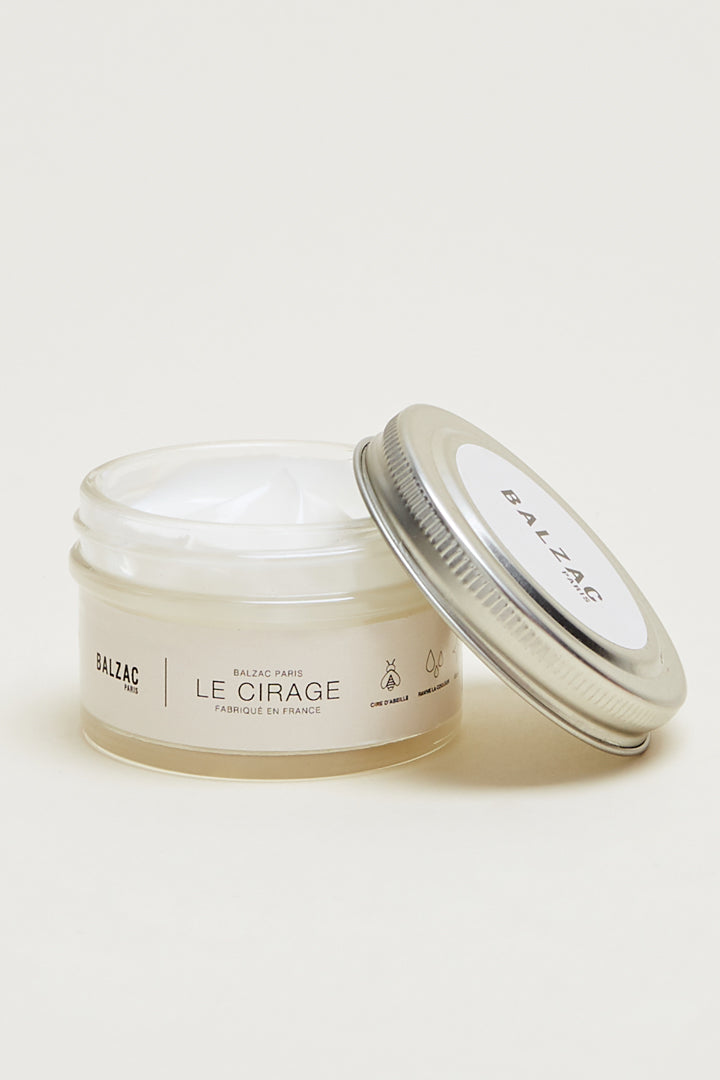 Après nettoyage du produit grâce au Lait, appliquer le cirage, sur toute la surface du cuir. Une fois sec, lustrer avec la chamoisine.Cette préparation a été conçue pour nourrir et protéger les cuirs lisses quelque soit le coloris. Grâce à sa formule, il nettoie, protège et ravive la couleur. De par la nature des cires présentes, la crème nourrit et fait briller. Faire un test sur un endroit caché afin de vérifier la tenue de la couleur. Il est conditionné en pot en verre 50mL.