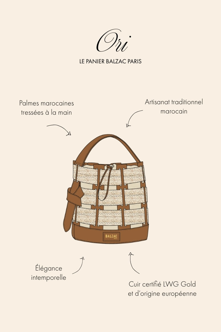 Le panier Ori est la parfaite alliance entre l’artisanat traditionnel marocain et le savoir-faire maroquinier qu’offre Balzac Paris depuis plus de 10 ans. Ses trois tresses de palmier, minutieusement travaillées, se mêlent élégamment aux découpes de cuir méticuleusement conçues, et créent un équilibre parfait, conférant au sac Ori une élégance intemporelle.