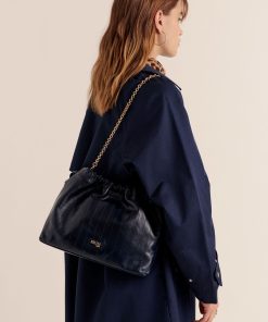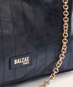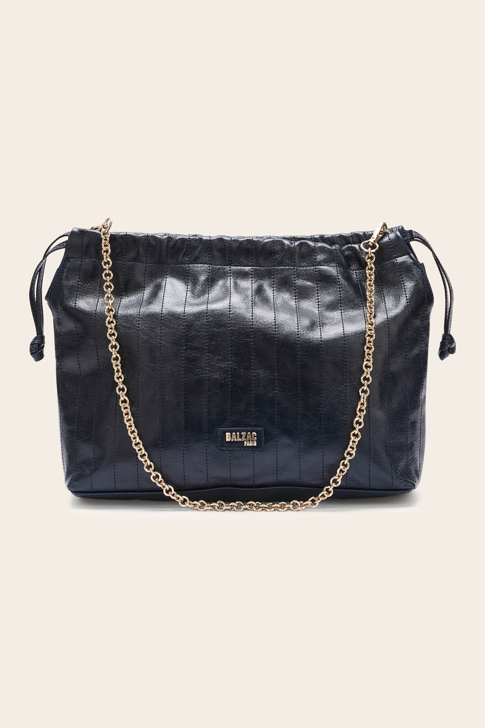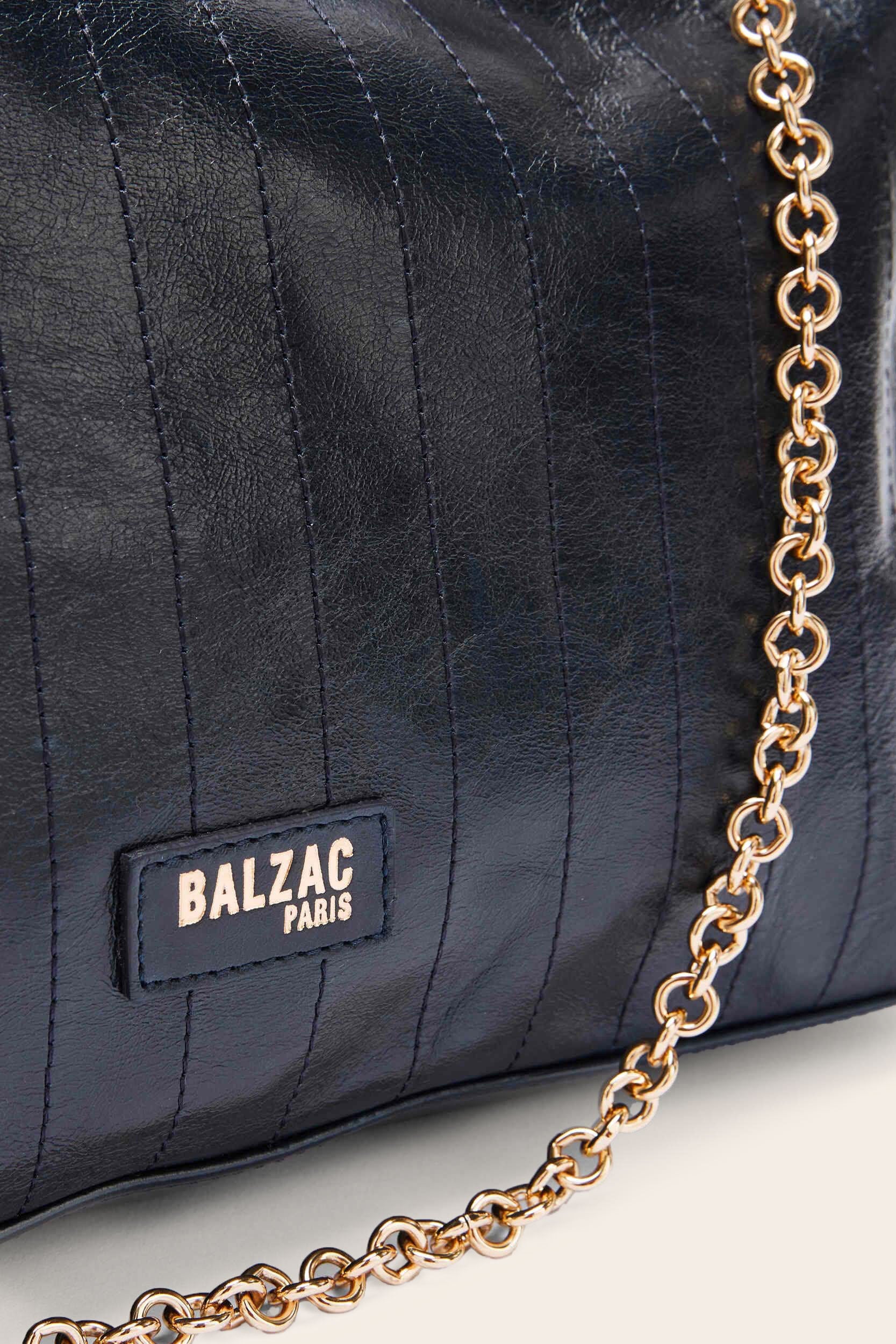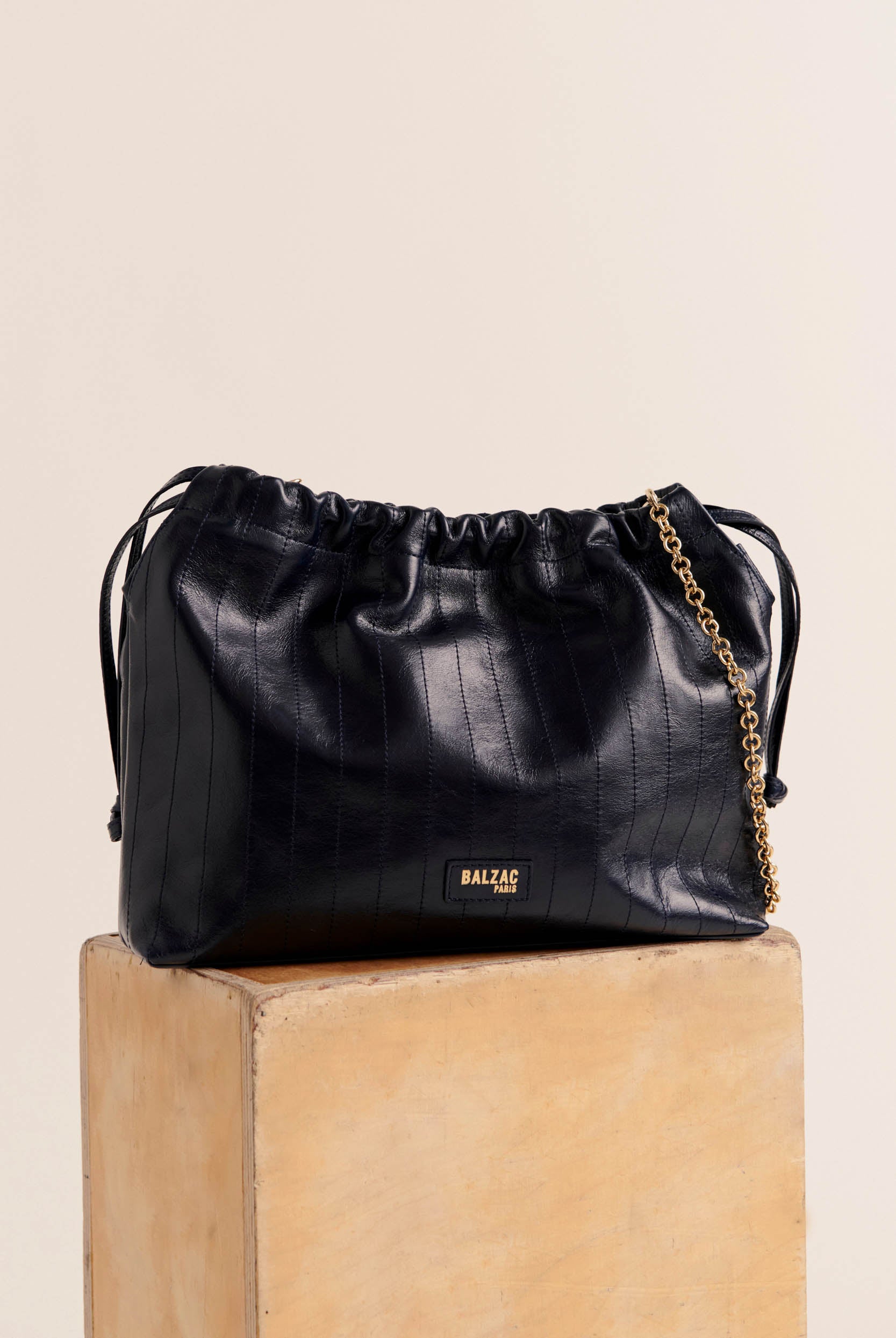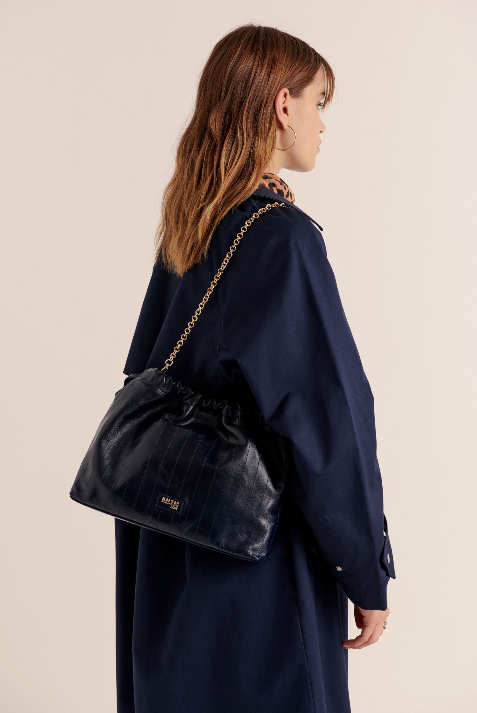 Rencontrez le nouveau sac signature Amaïa bleu nuit. Mixant surpiqure et cuir somptueux à 100% d’origine européenne, cette nouvelle pièce incarne élégance et polyvalence. Orné d’une chaîne dorée, il se porte à l’épaule pour une allure chic et décontractée