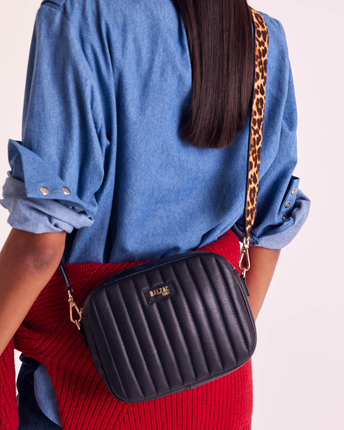 Essayez notre sac César iconique avec sa anse contrastée léopard ! En 100% cuir italien, un basique par sa couleur noire qui a juste ce qu’il faut d’originalité !