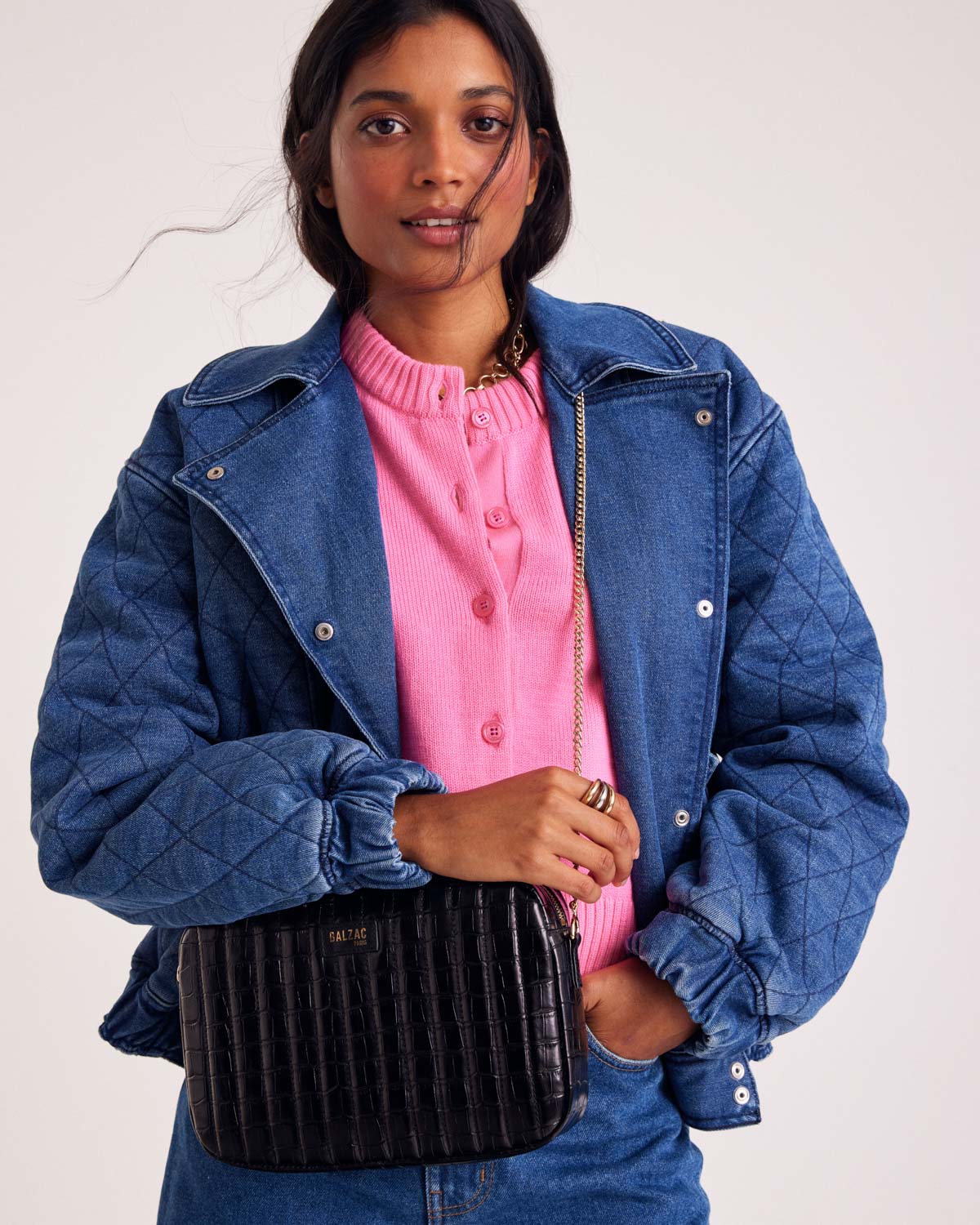 Notre best-seller le grand César revient dans un imprimé qui vous fera toutes craquer : effet croco embossé noir ! À la fois chic et à la pointe de la tendance, il vous suivra dans vos look les plus fous !