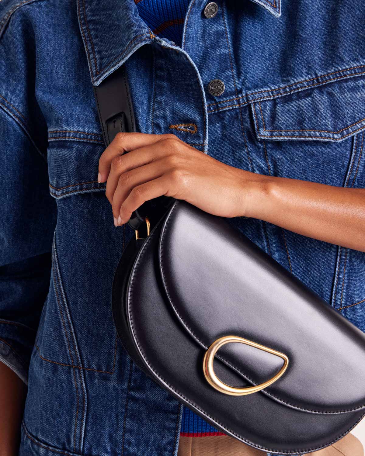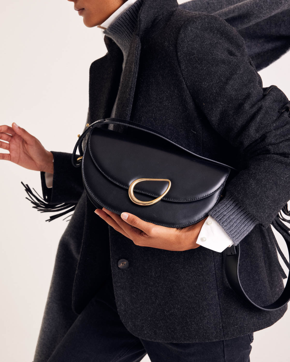 Avec sa forme demi-lune élégante et sa silhouette épurée, Maé affirme une allure à la fois moderne et intemporelle. Il est habillé d’une pièce métallique dorée exclusive, directement inspirée de notre monogramme Balzac Paris.