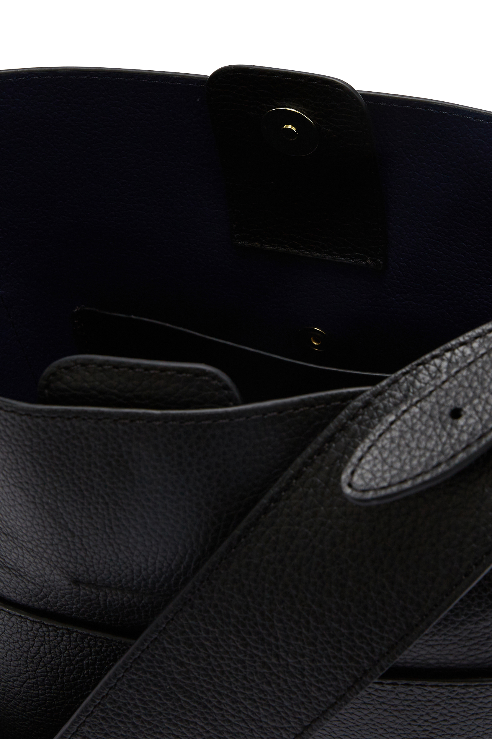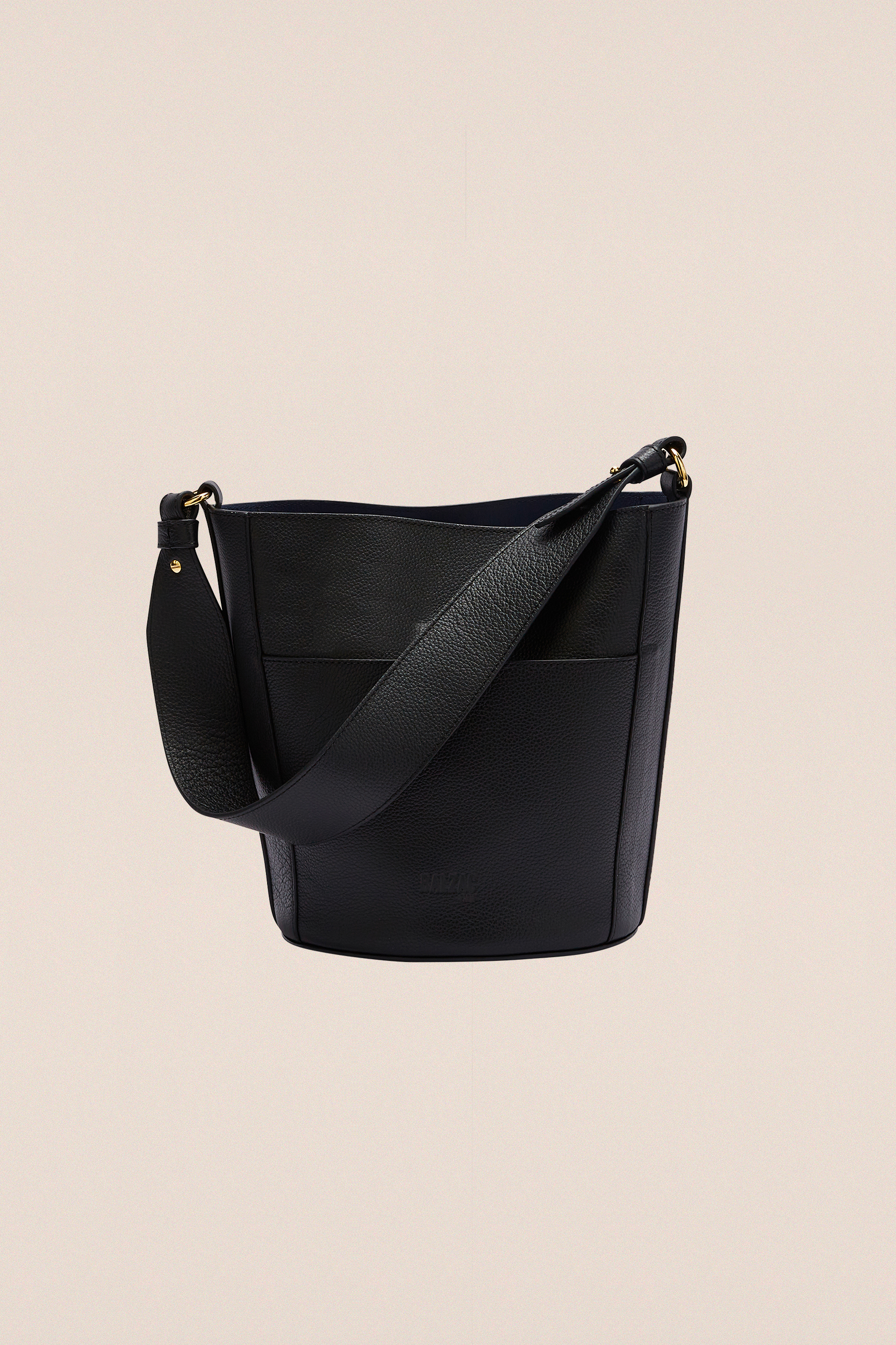 Le sac Sofia dans sa version grainée noir et son intérieur marine incarne une esthétique élégante et souple, aux finitions soignées et à l’allure raffinée.