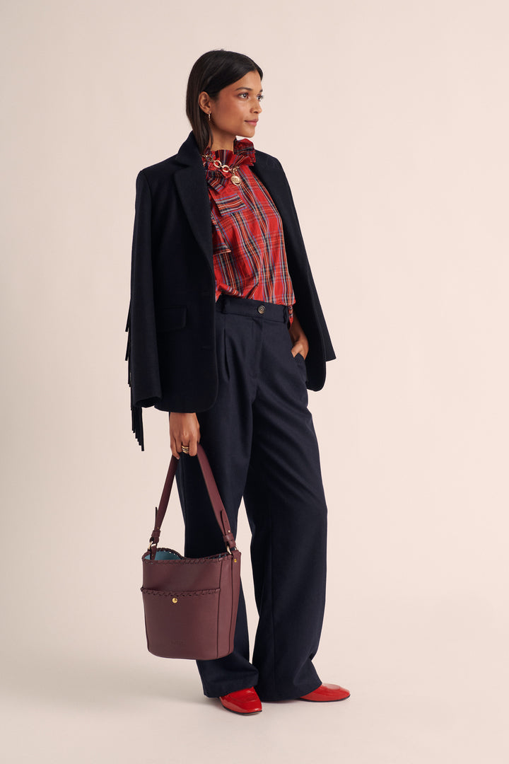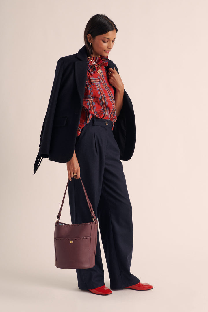 Conçu en cuir bicolore bordeaux et bleu ciel, le sac Sofia est une véritable ode au savoir-faire portugais et à l’élégance française. Ses bords tressés, aux finitions soignées, lui confèrent une touche artisanale raffinée. Parfait équilibre entre style et simplicité, il devient le compagnon idéal, une pièce incontournable du quotidien.