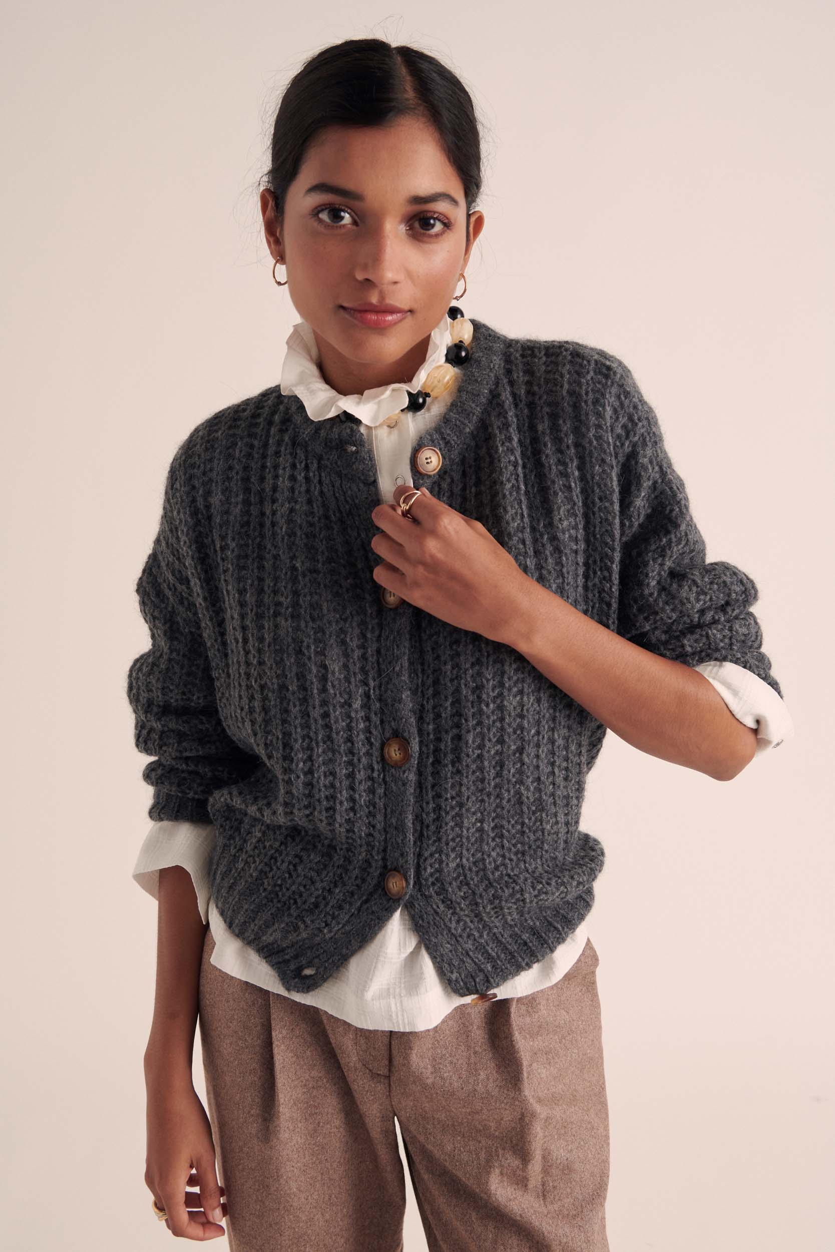 Le cardigan St Gilles gris vous gardera au chaud tout l’hiver.