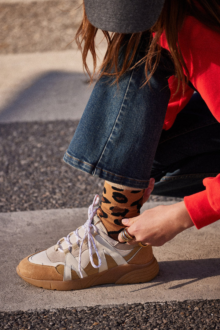 Les chaussettes imprimé léopard apporteront une touche peps et confortable à votre tenue.