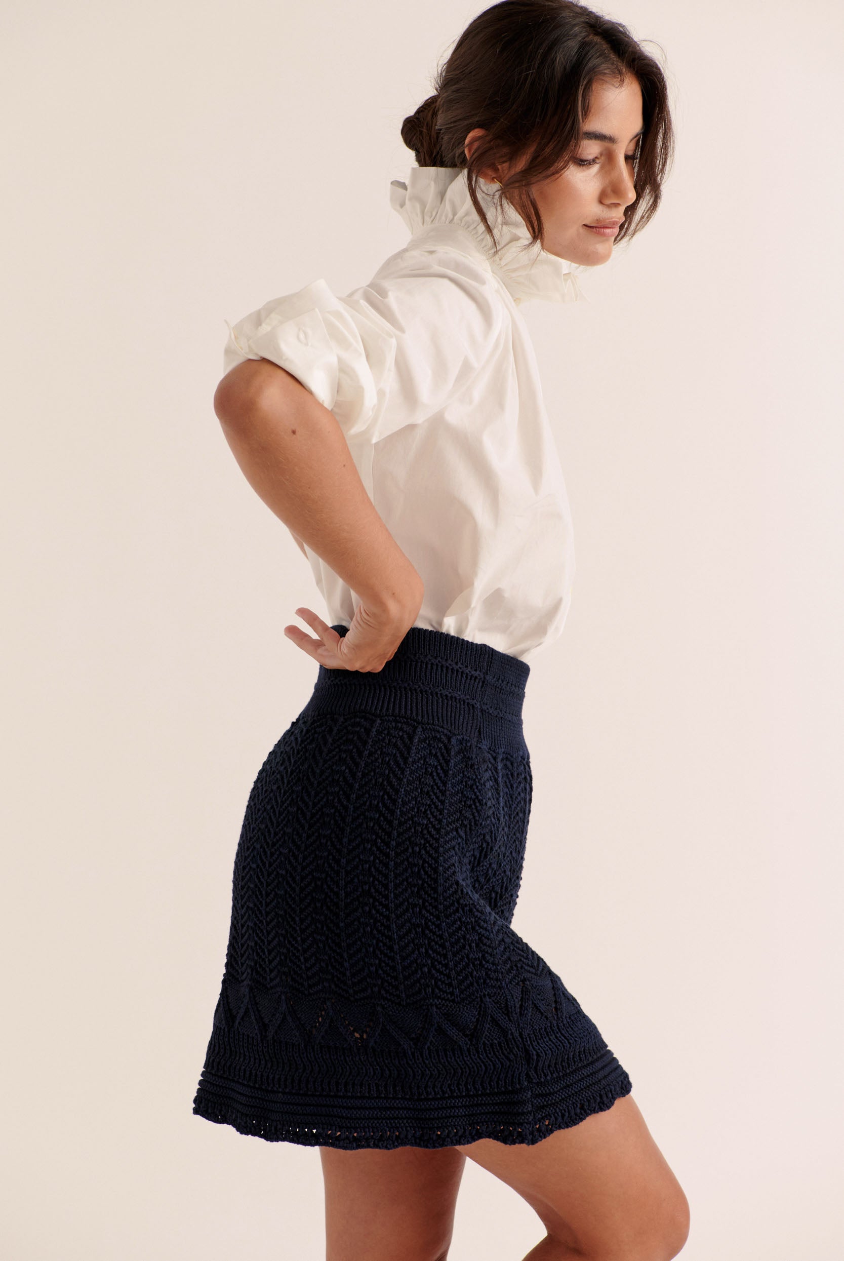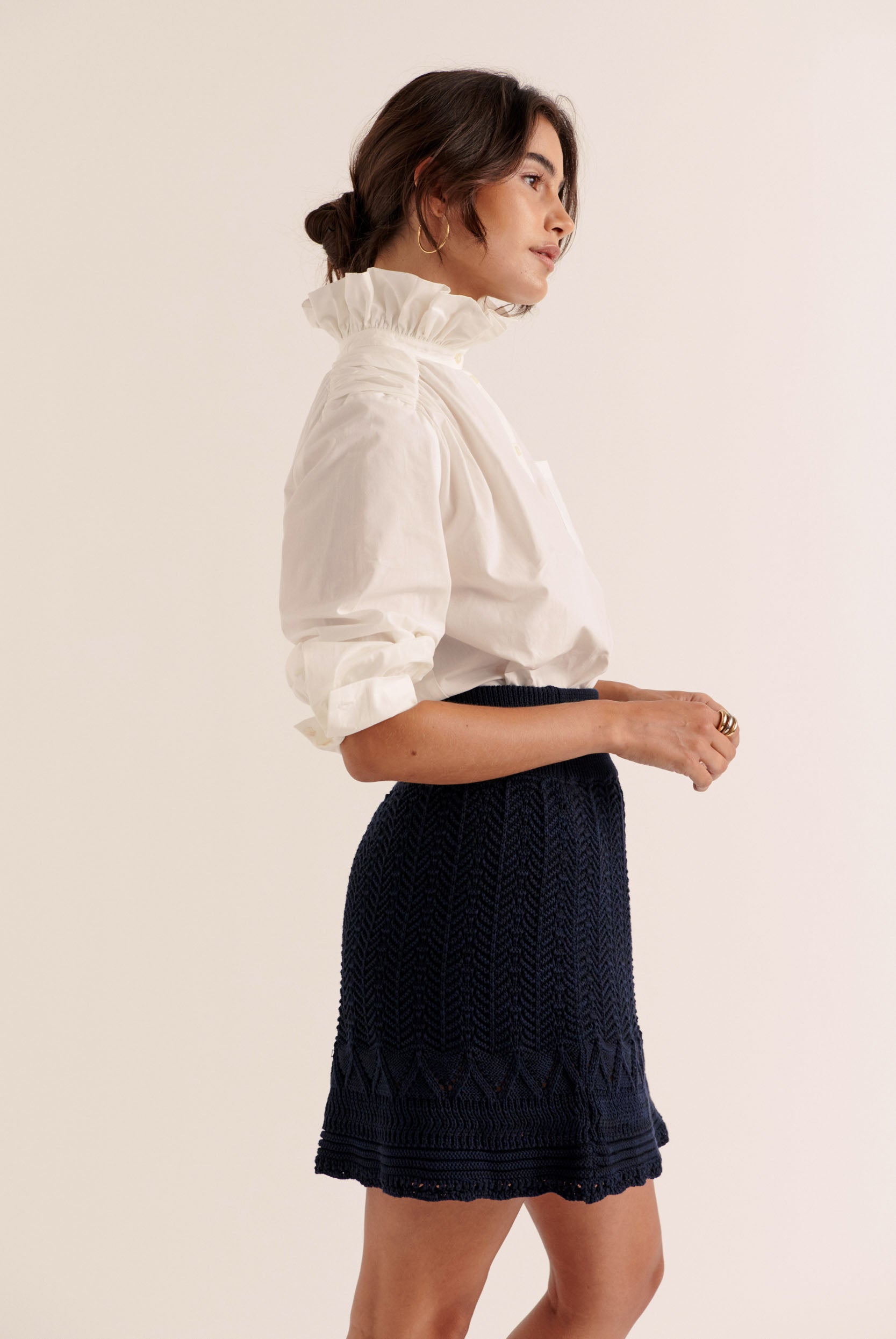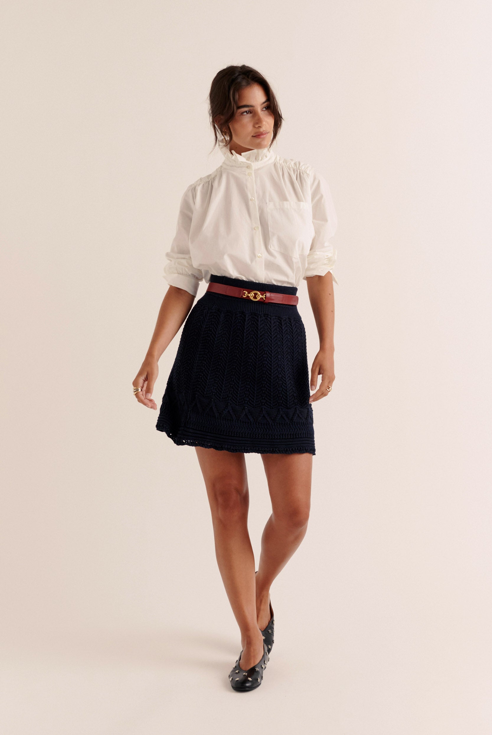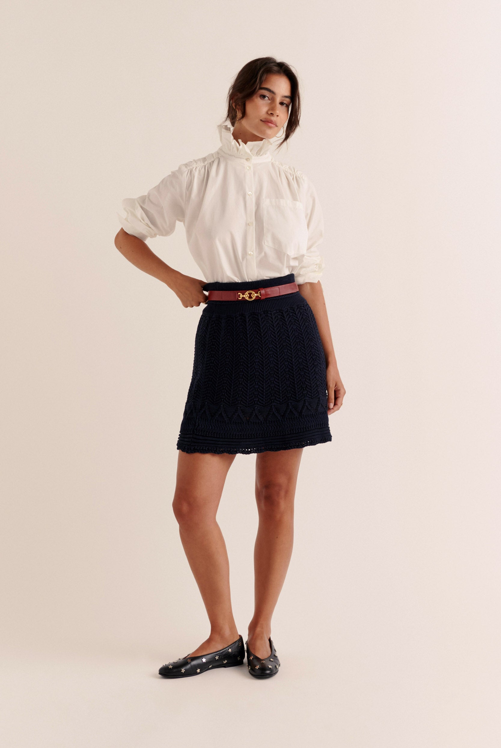 Twistez votre silhouette avec la nouvelle jupe Phoebe marine. Pour un total look retro-chic, associez-la avec le polo Gwena.