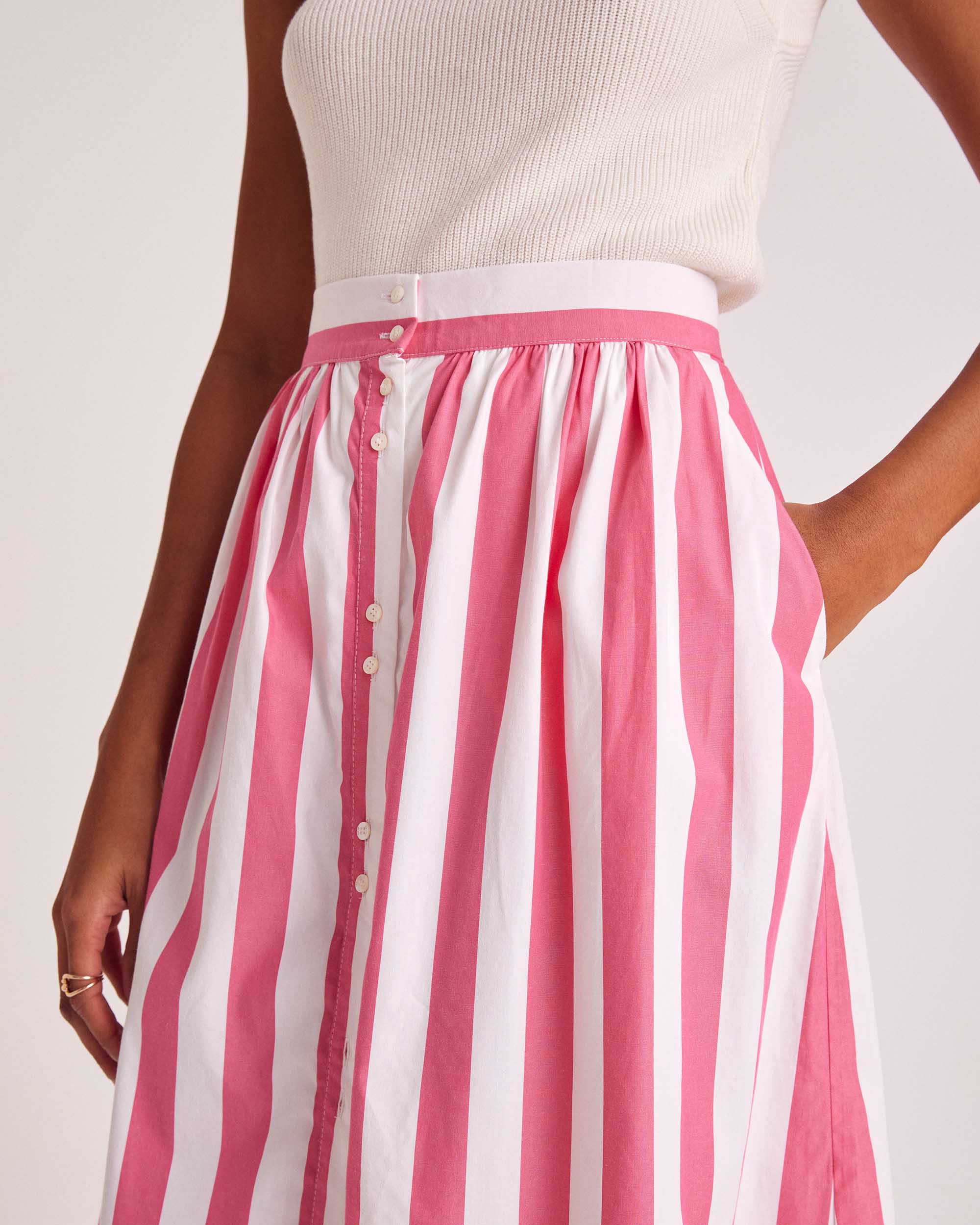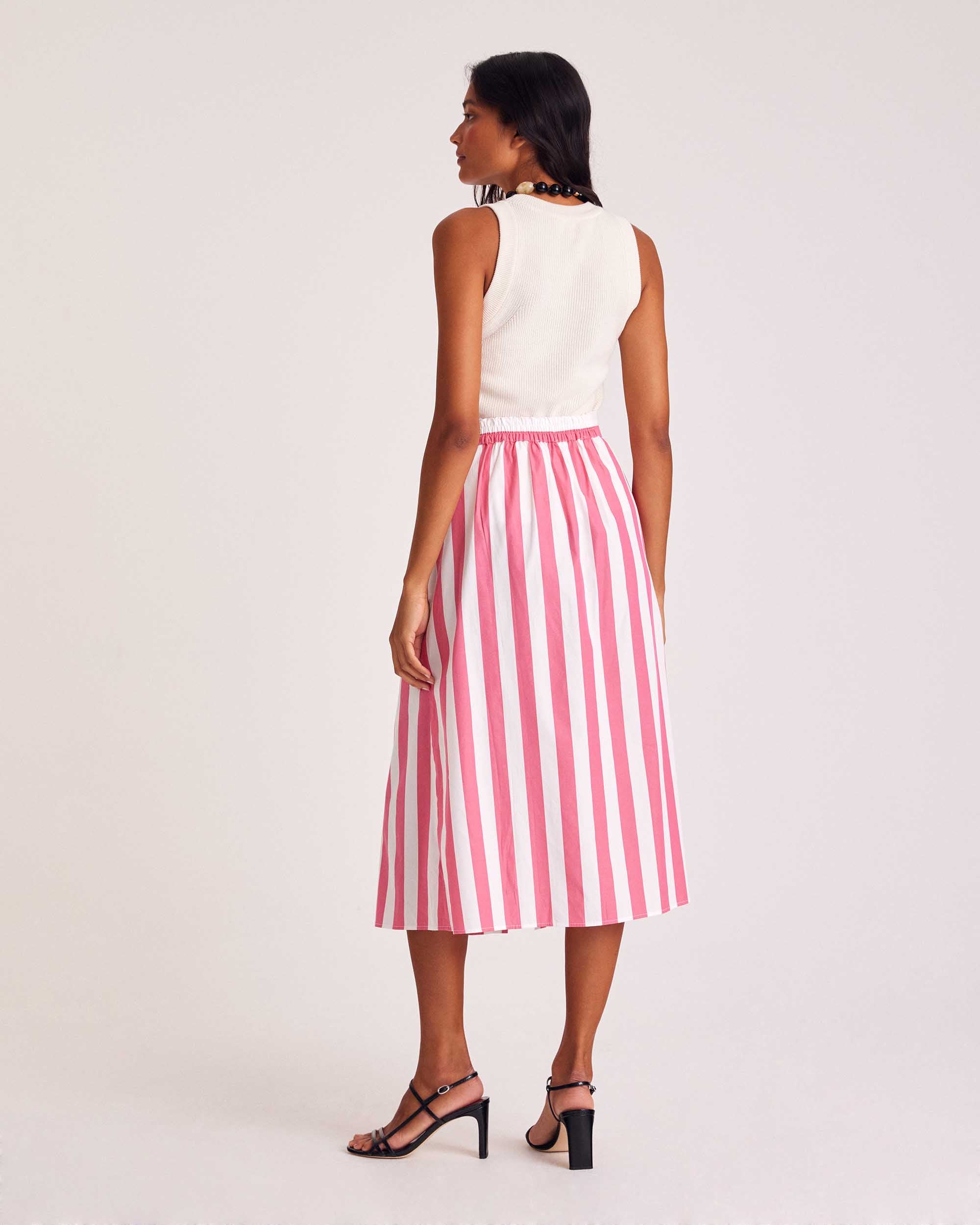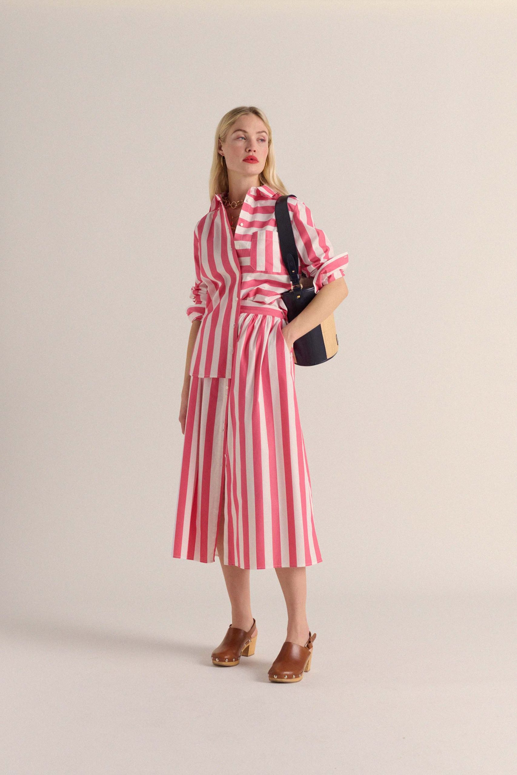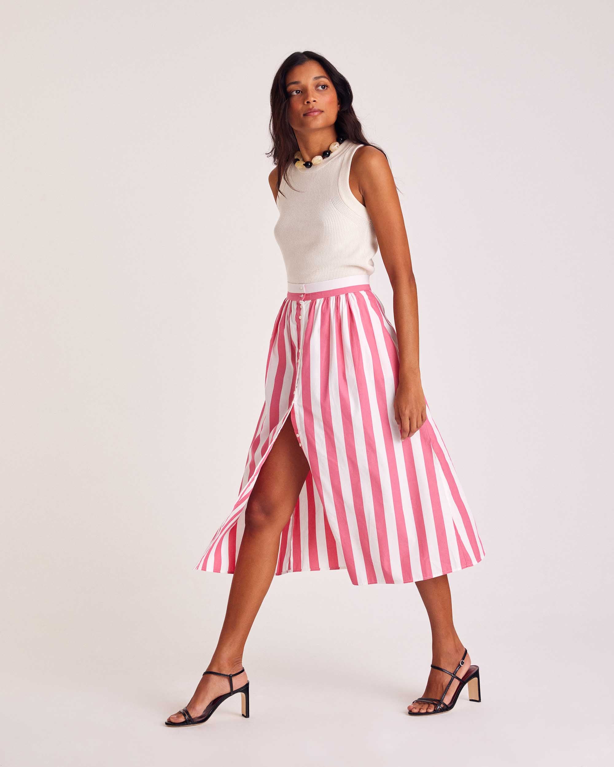 L’incontournable jupe Sally revient avec des rayures roses qui donnent fière allure ! Avec sa taille haute et son tombé fluide, elle est parfaite pour vous accompagner au quoidien.
