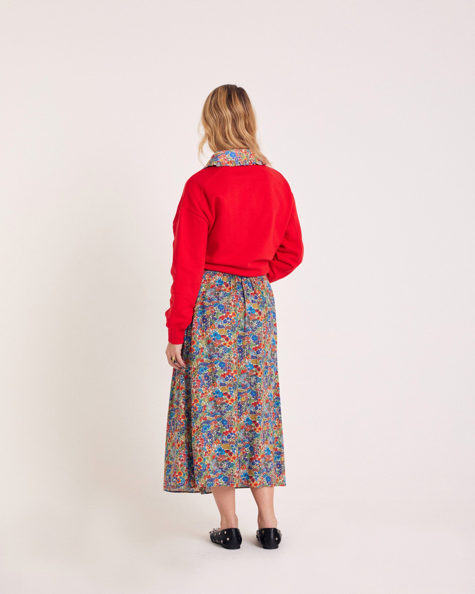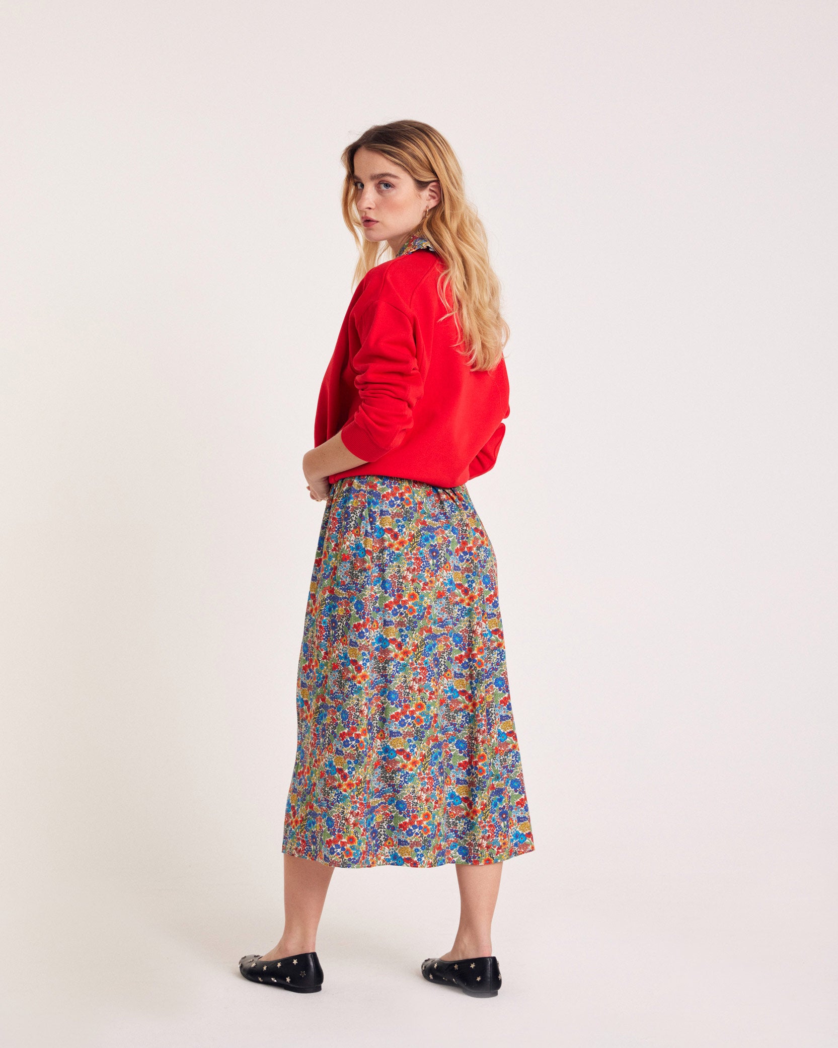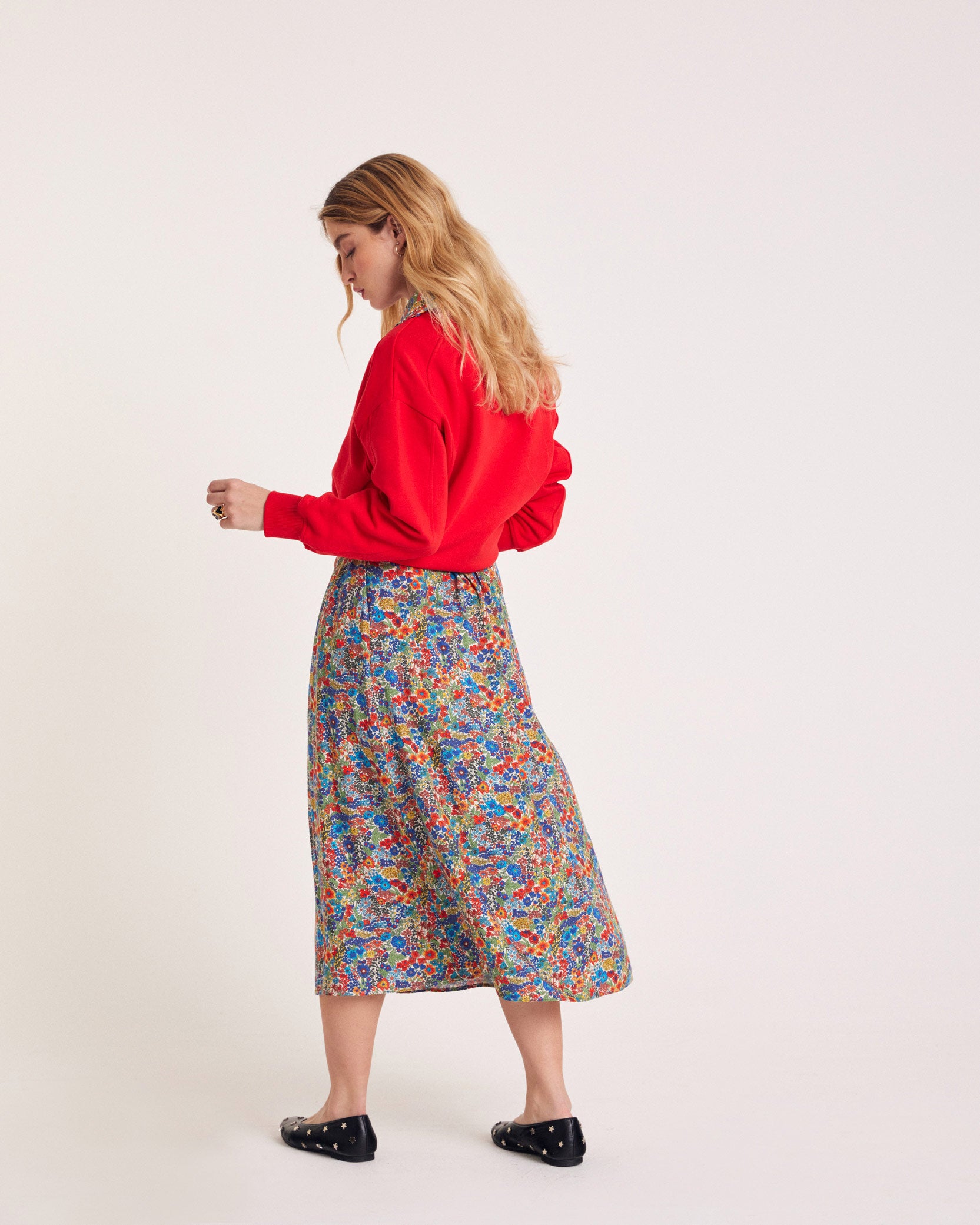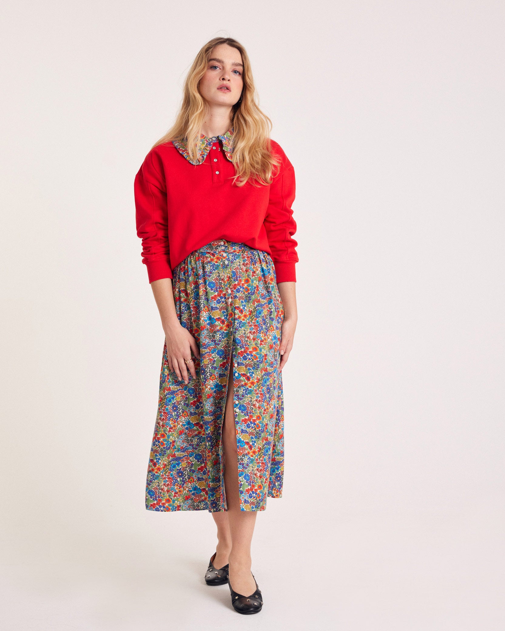 L’incontournable jupe Sally se réinvente dans un imprimé floral signé Liberty Fabrics. Avec sa taille haute et son tombé fluide, elle est idéale pour adopter un style rétro chic.