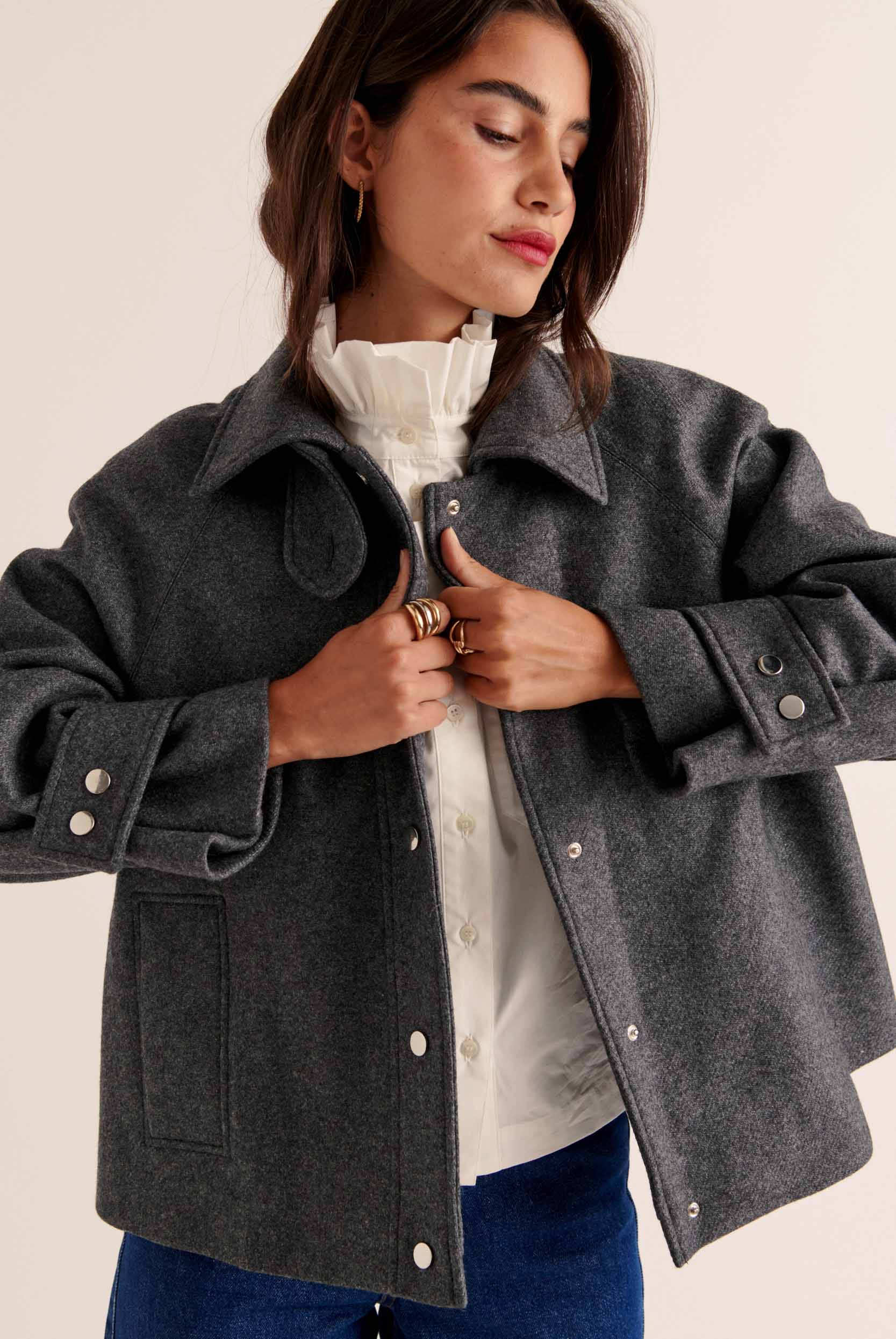 Le manteau Beauny revient cet hiver dans une version gris anthracite totalement irrésistible. À la fois chic et graphique, il vous accompagnera toute la saison.