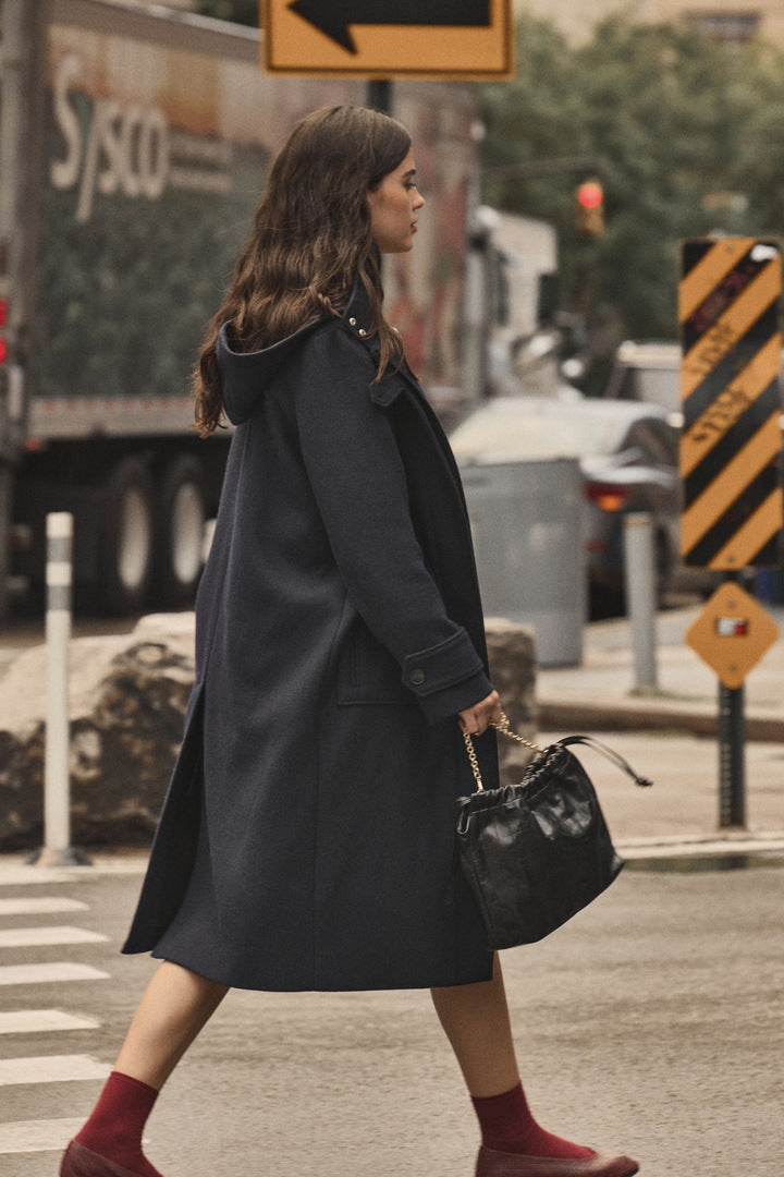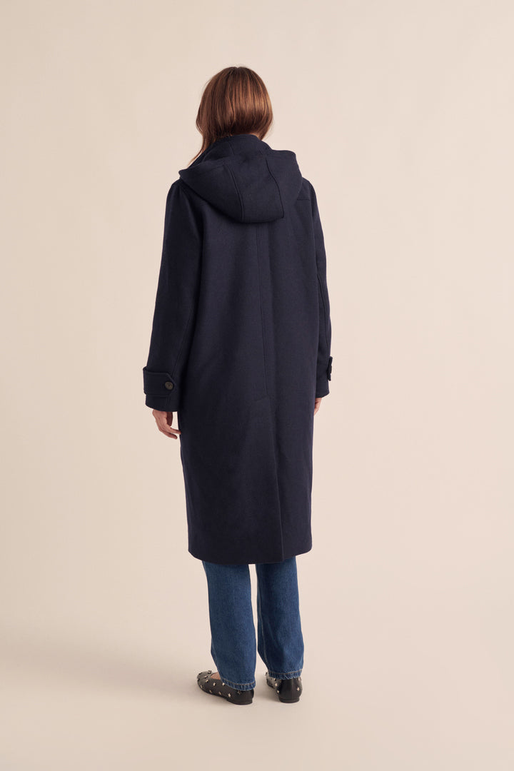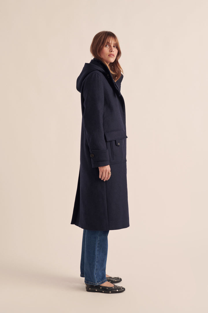 Avec sa capuche, le manteau Quibery marine sera votre indispensable de l’hiver