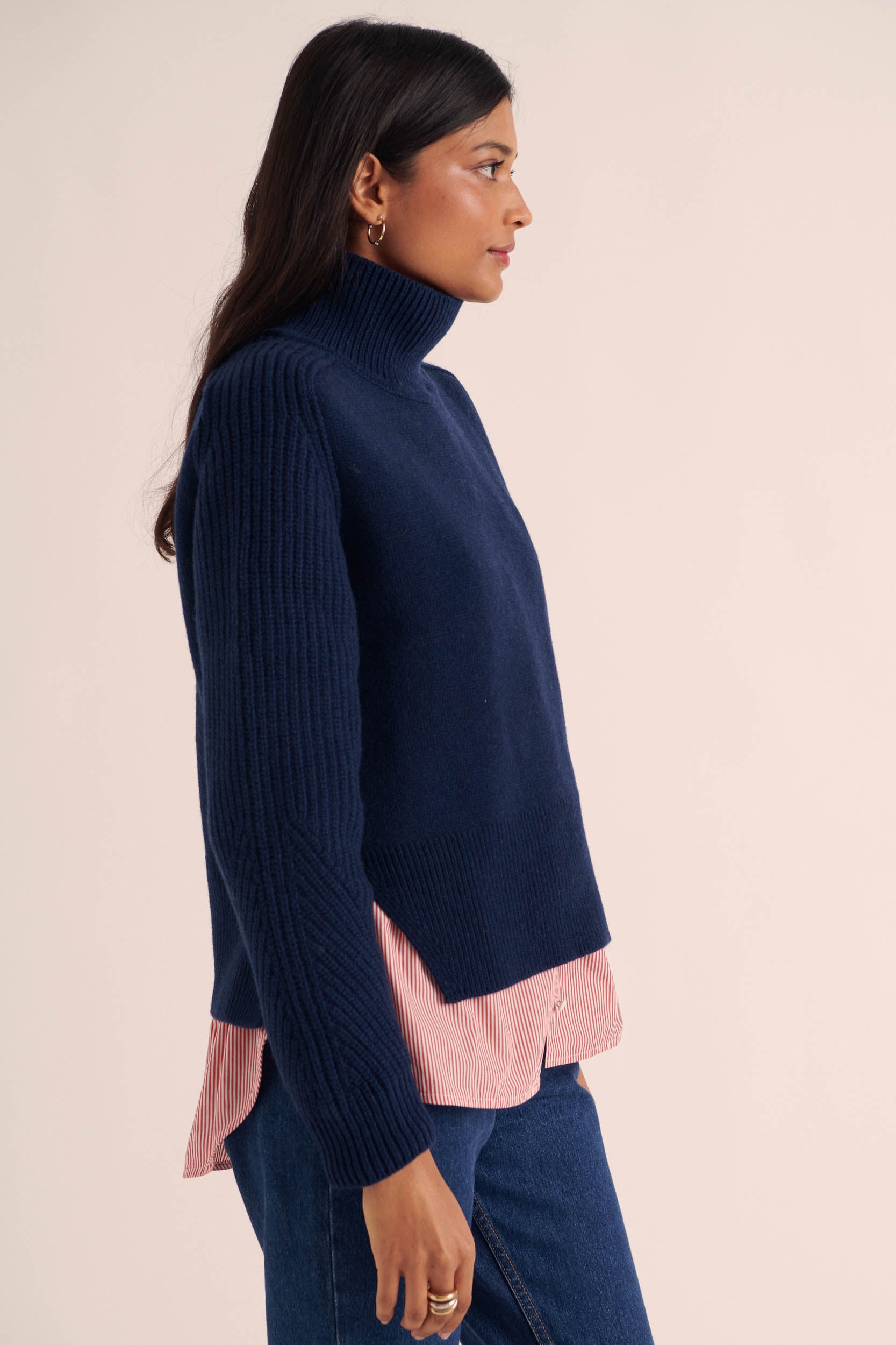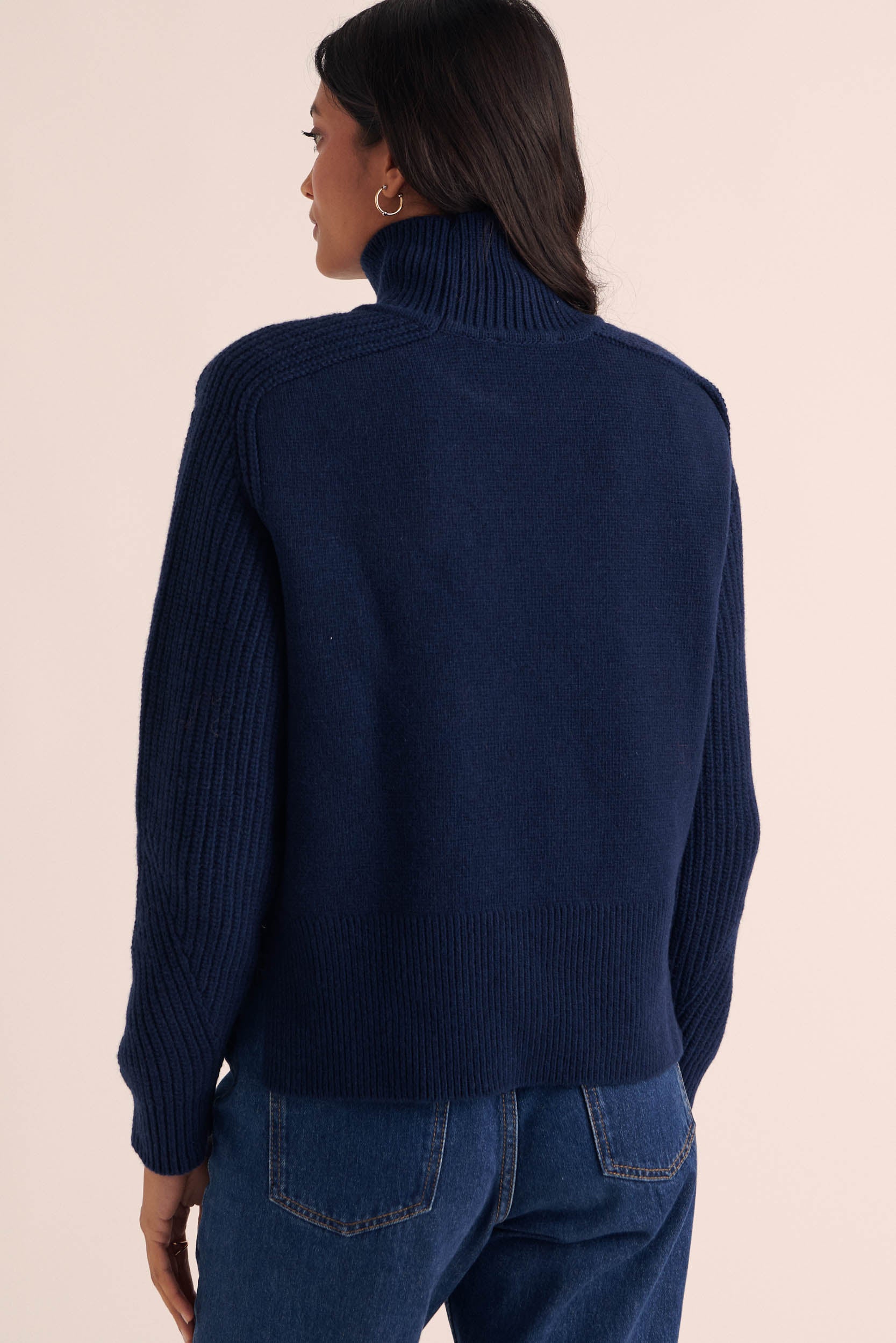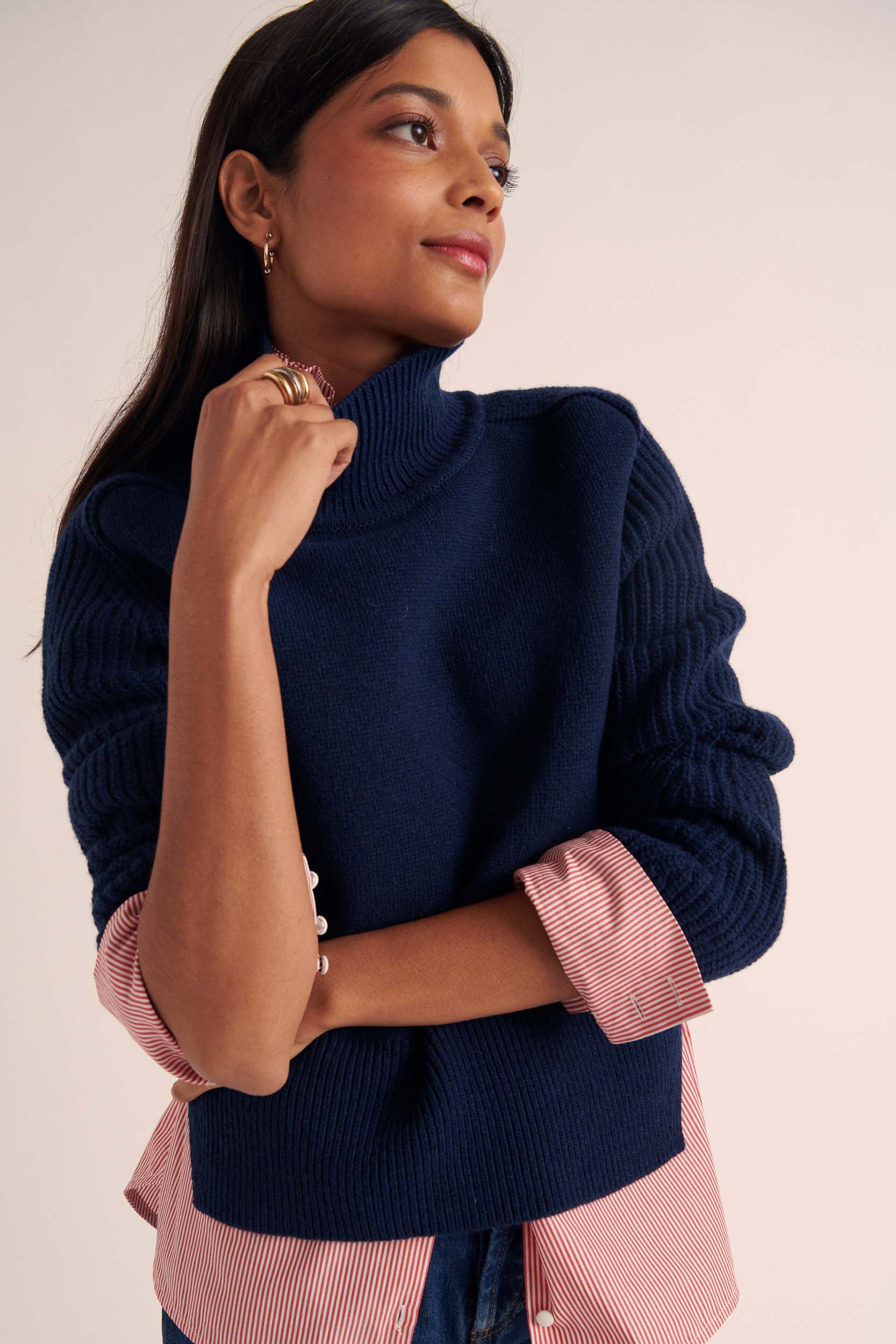 Le pull Maël bleu marine vous suivra toute la saison hivernale.