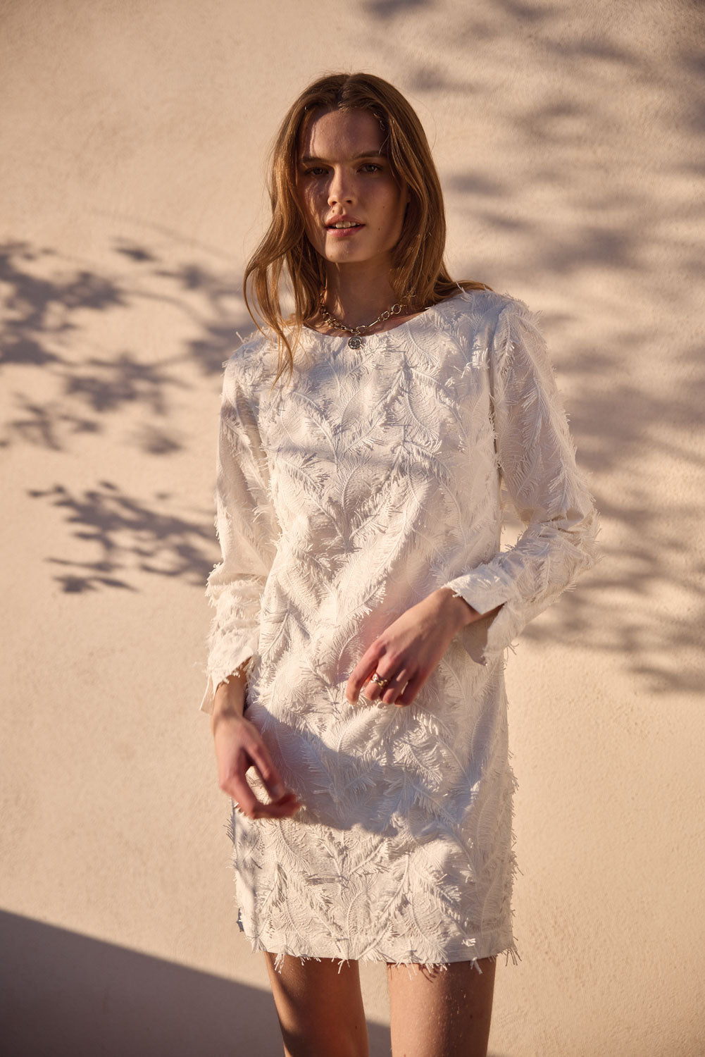- Finition en bas de manche et bas de robe, grands ourlets pour structuré le modèle