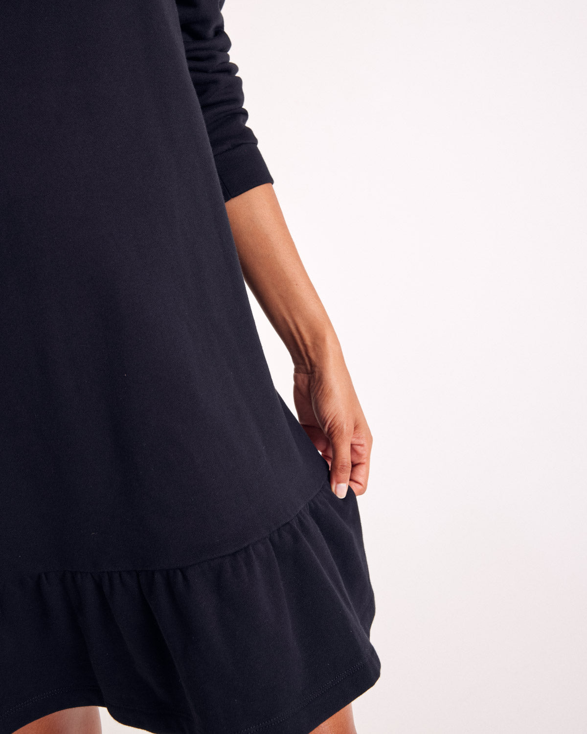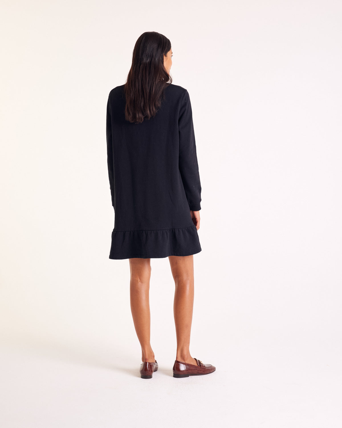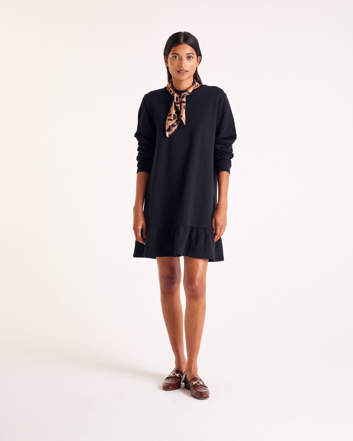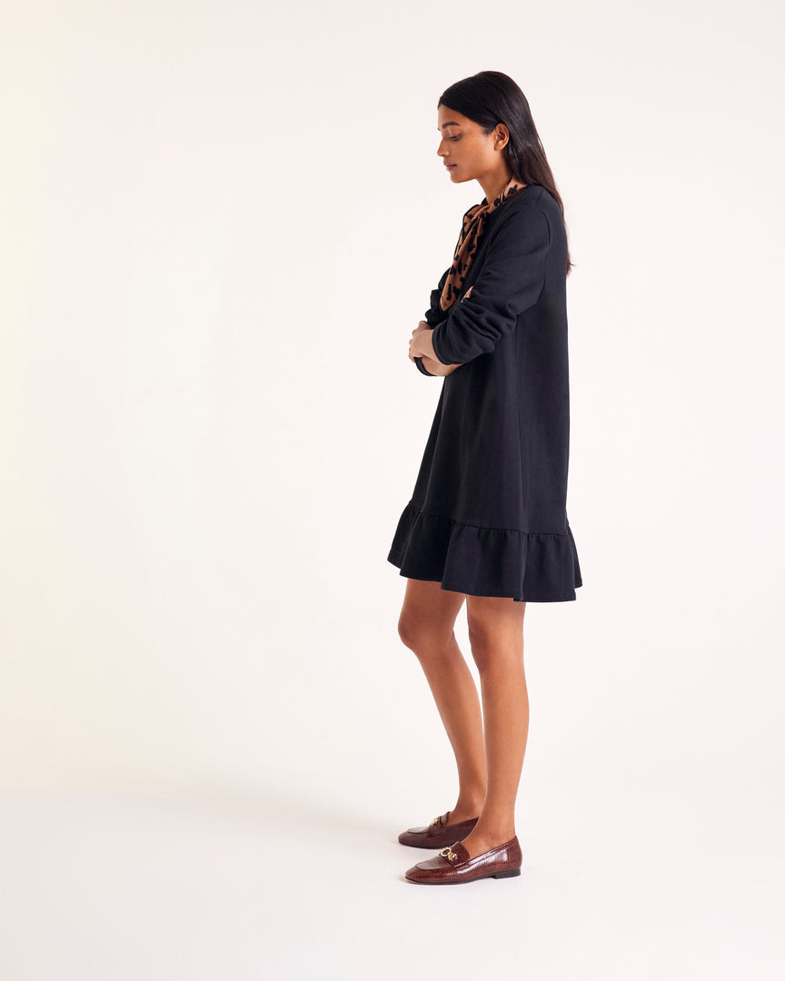 La Aria c’est la petite robe noire simple qu’il nous faut toute dans notre vestiaire. Ses petits volants font tout son charme.