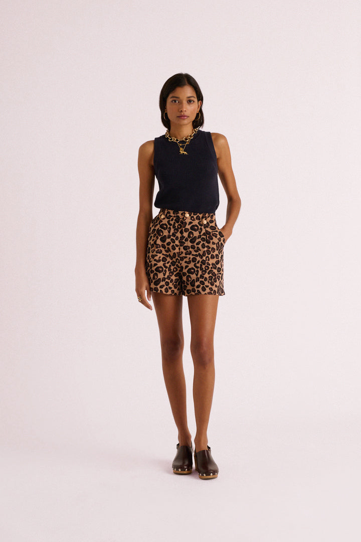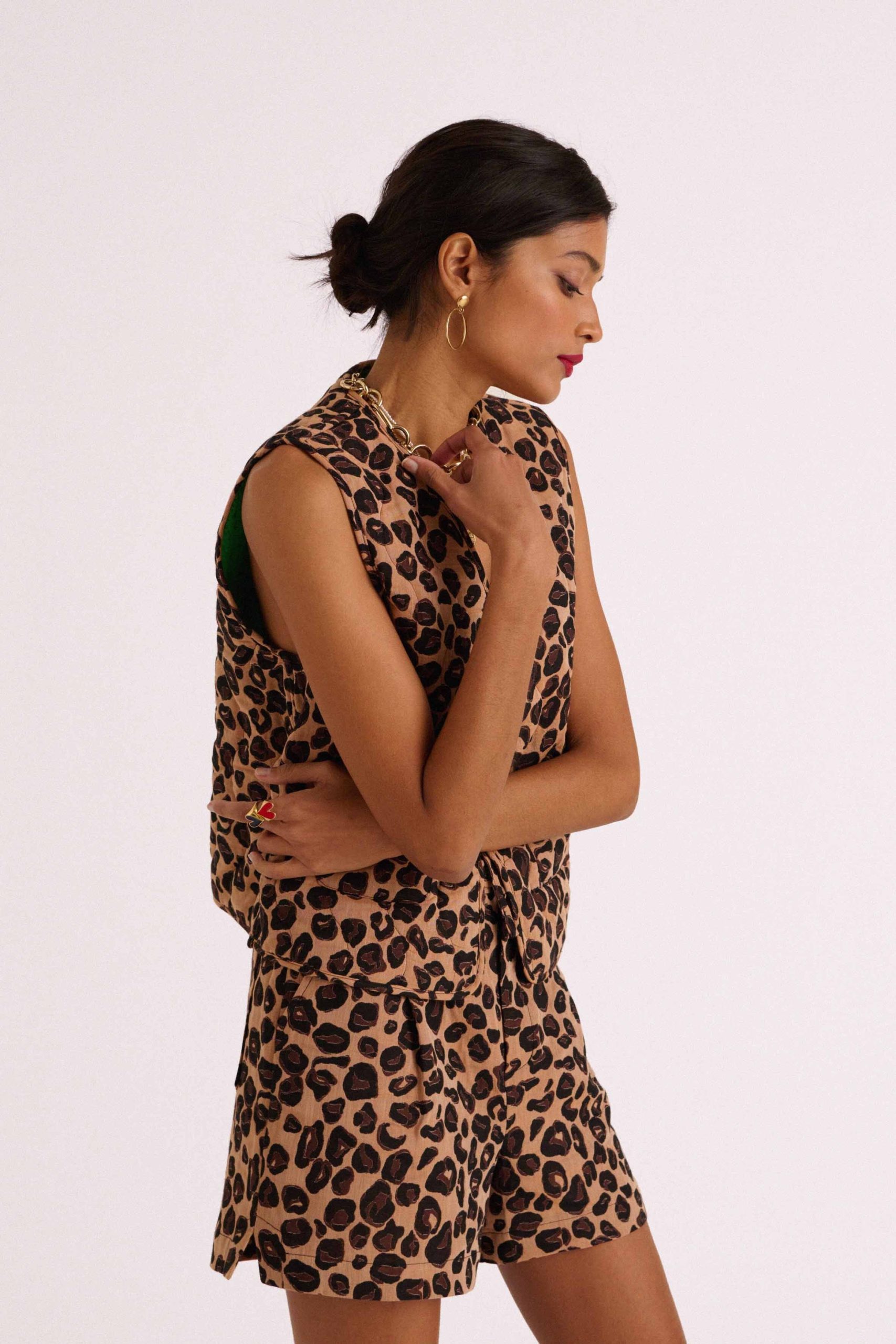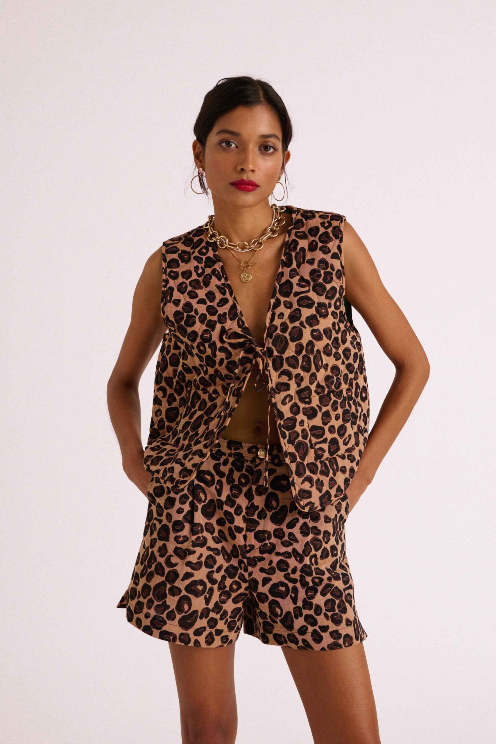 Le short Simon léopard remplacera votre tailleur de l’hiver ! On aime sa taille haute, le plissé sur l’avant et ses fentes sur les côtés qui lui confère une allure structurée.