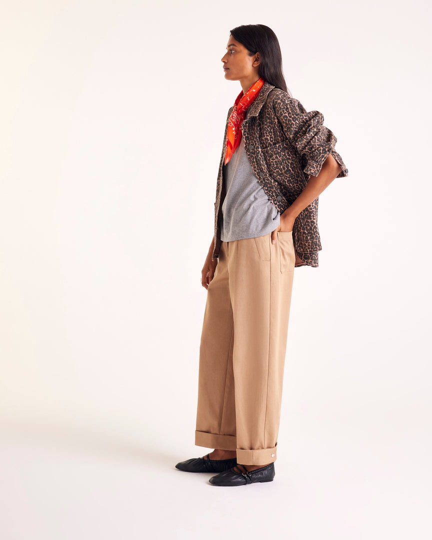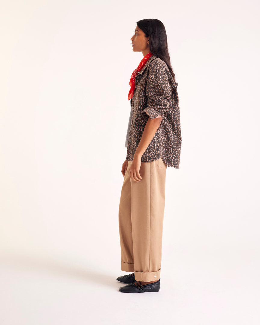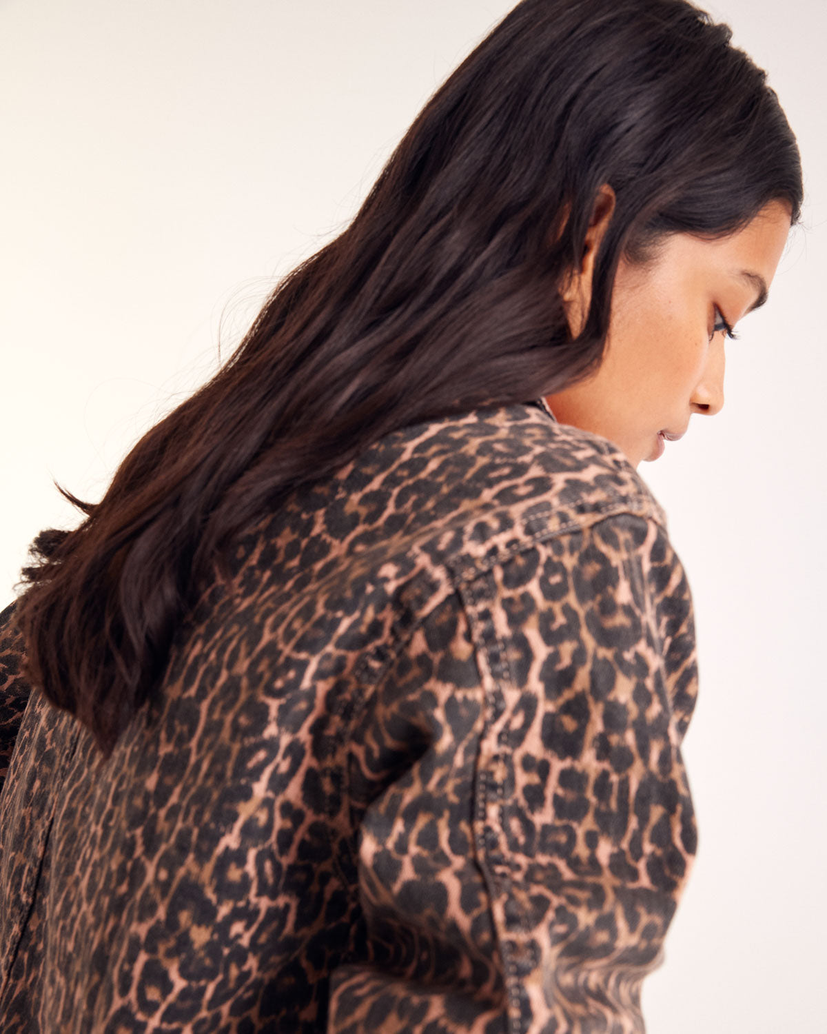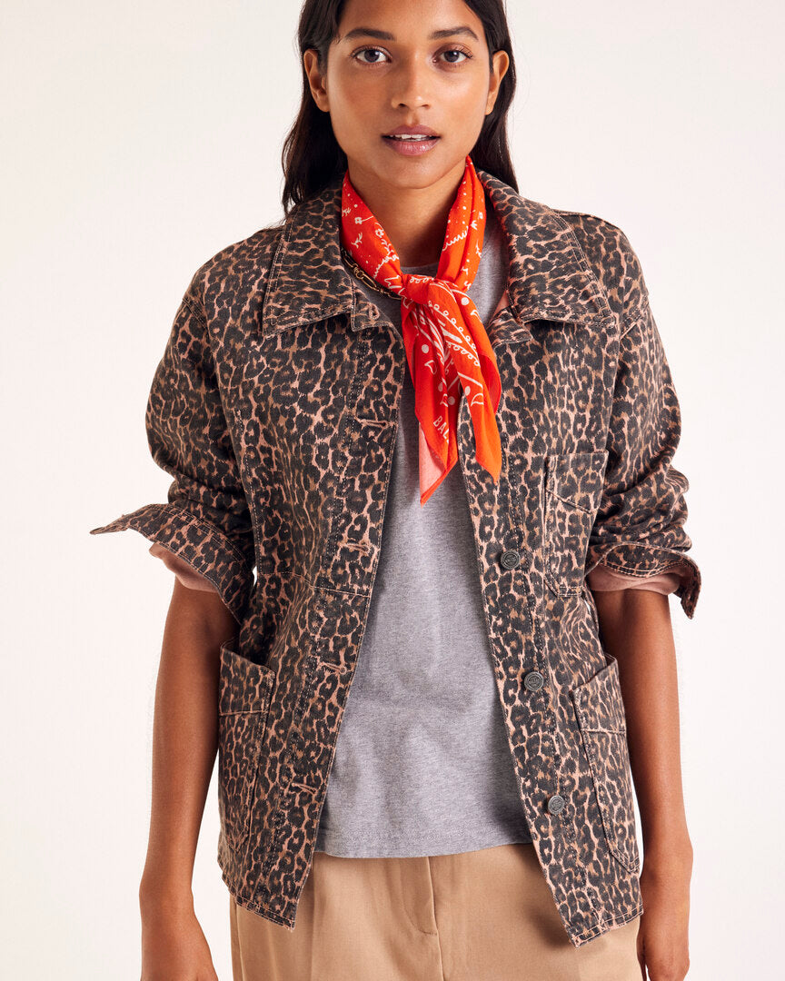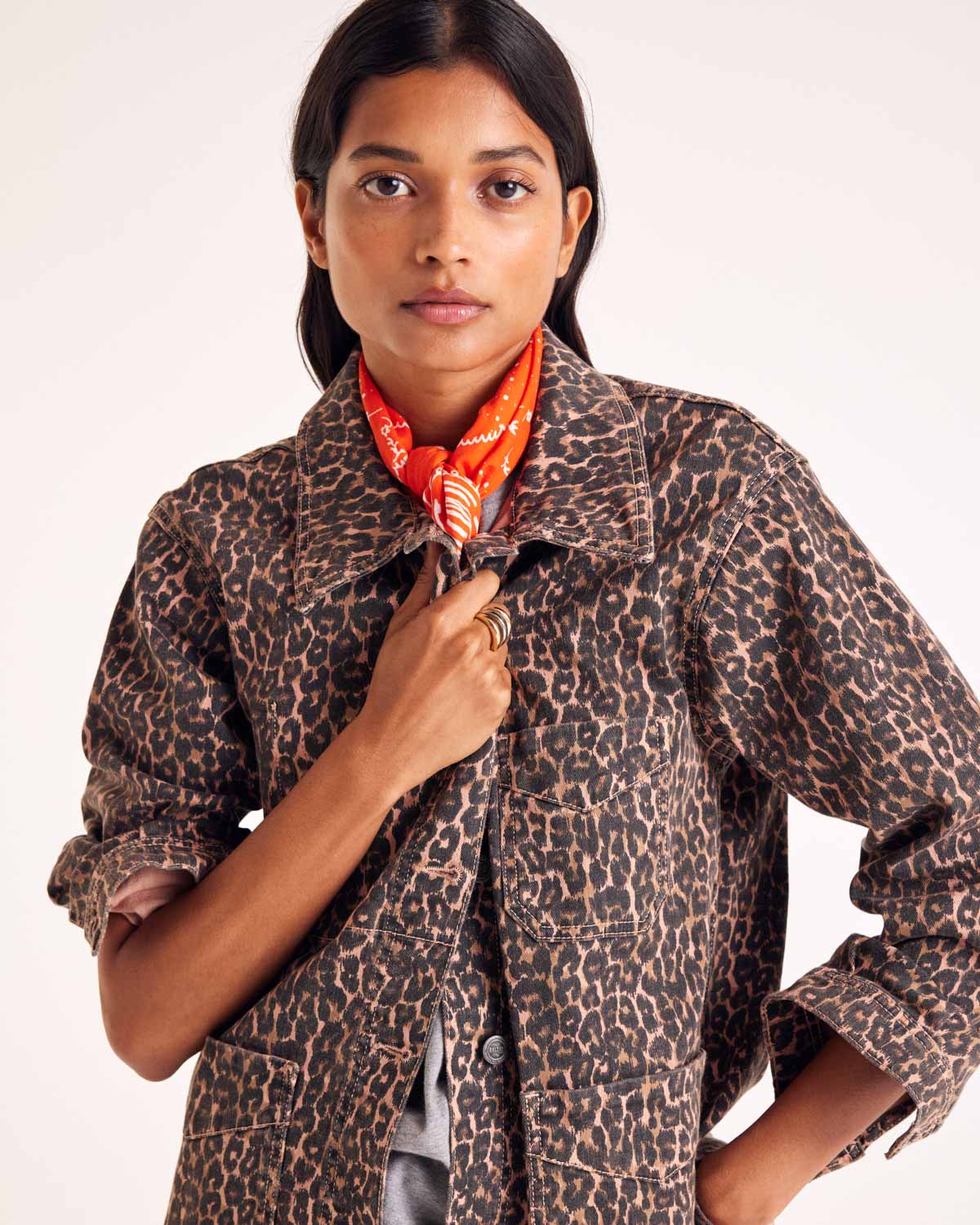 La veste Marais léopard café est idéale pour la saison automnale avec ses poches sur le devant.