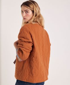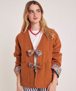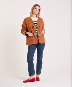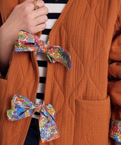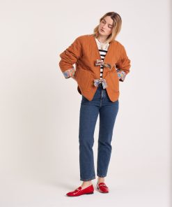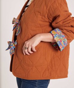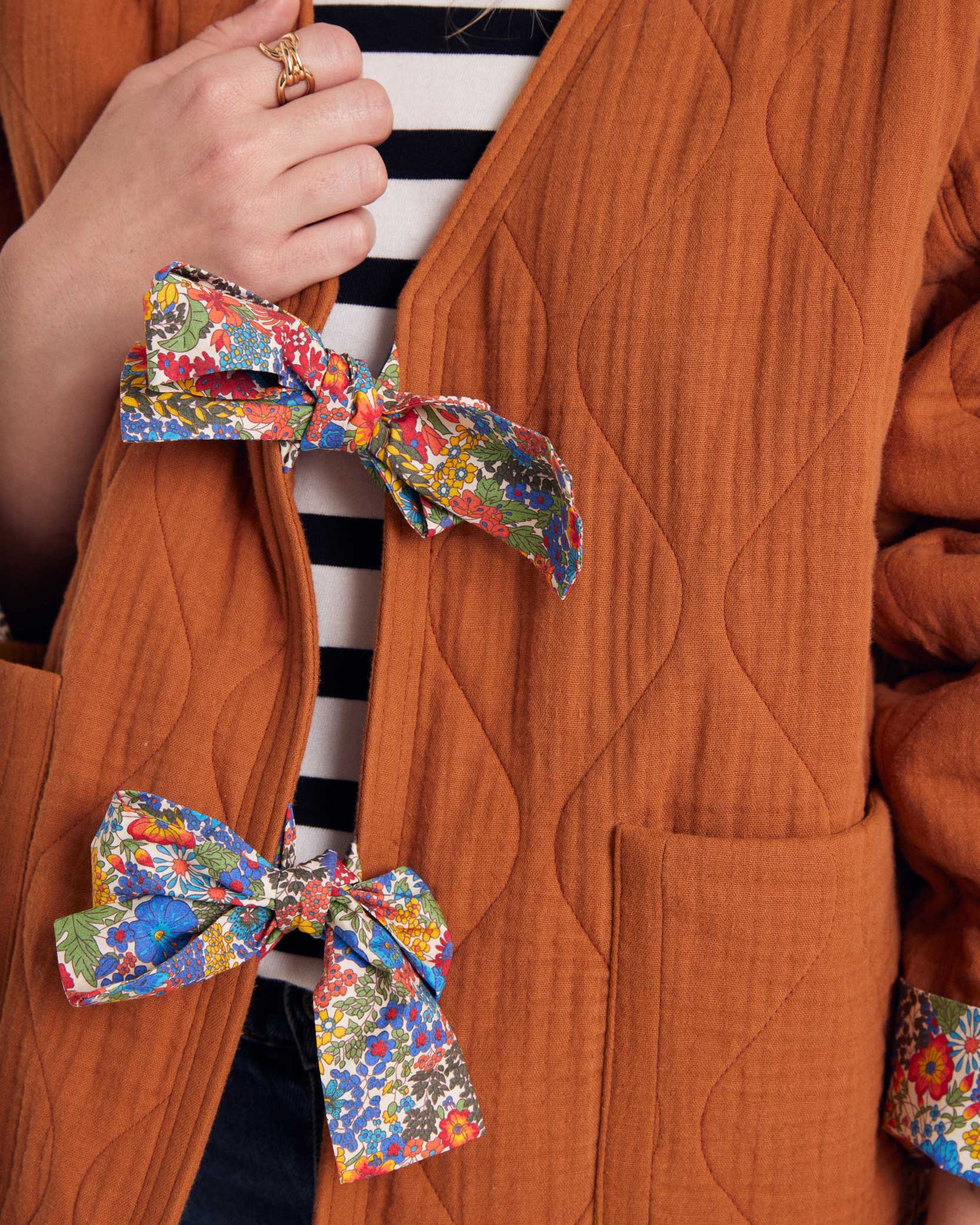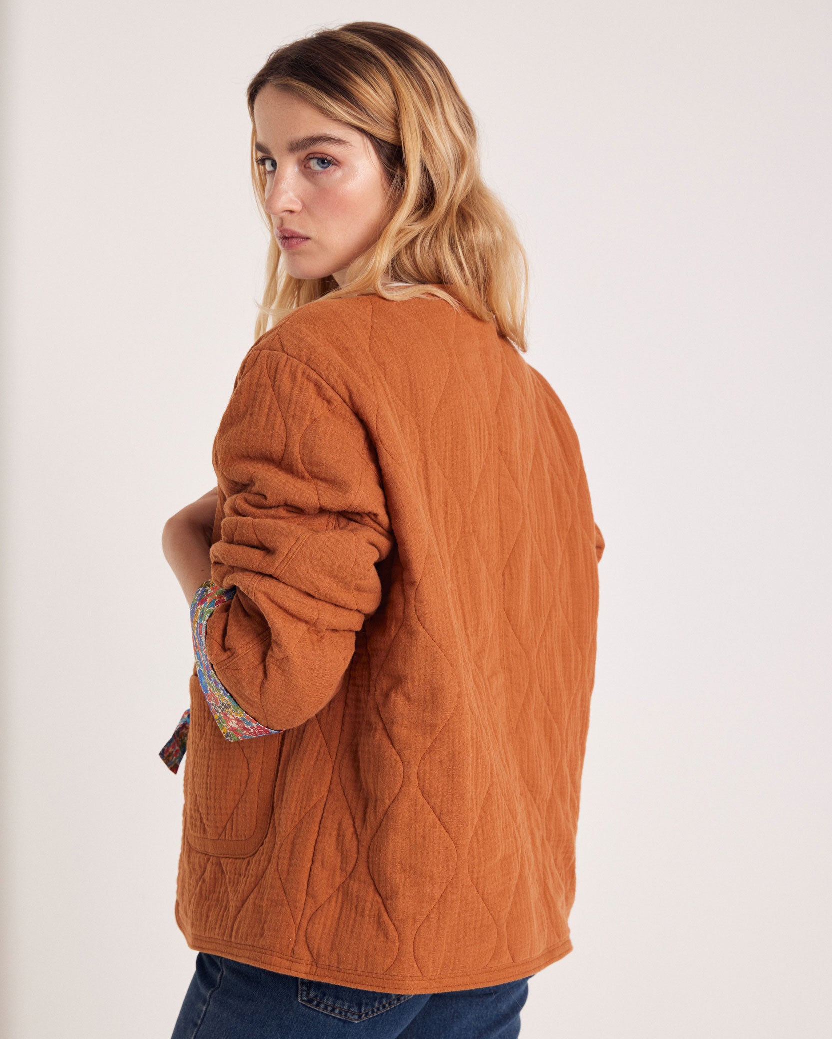 Ne cherchez plus la veste de mi-saison idéale, Poppy est celle qu’il vous faut ! En gaze de coton terracotta, elle séduit par son matelassage au motif vague et ses détails Liberty raffinés. Sa coupe effet sablier et son encolure V en font une pièce élégante et facile à porter.